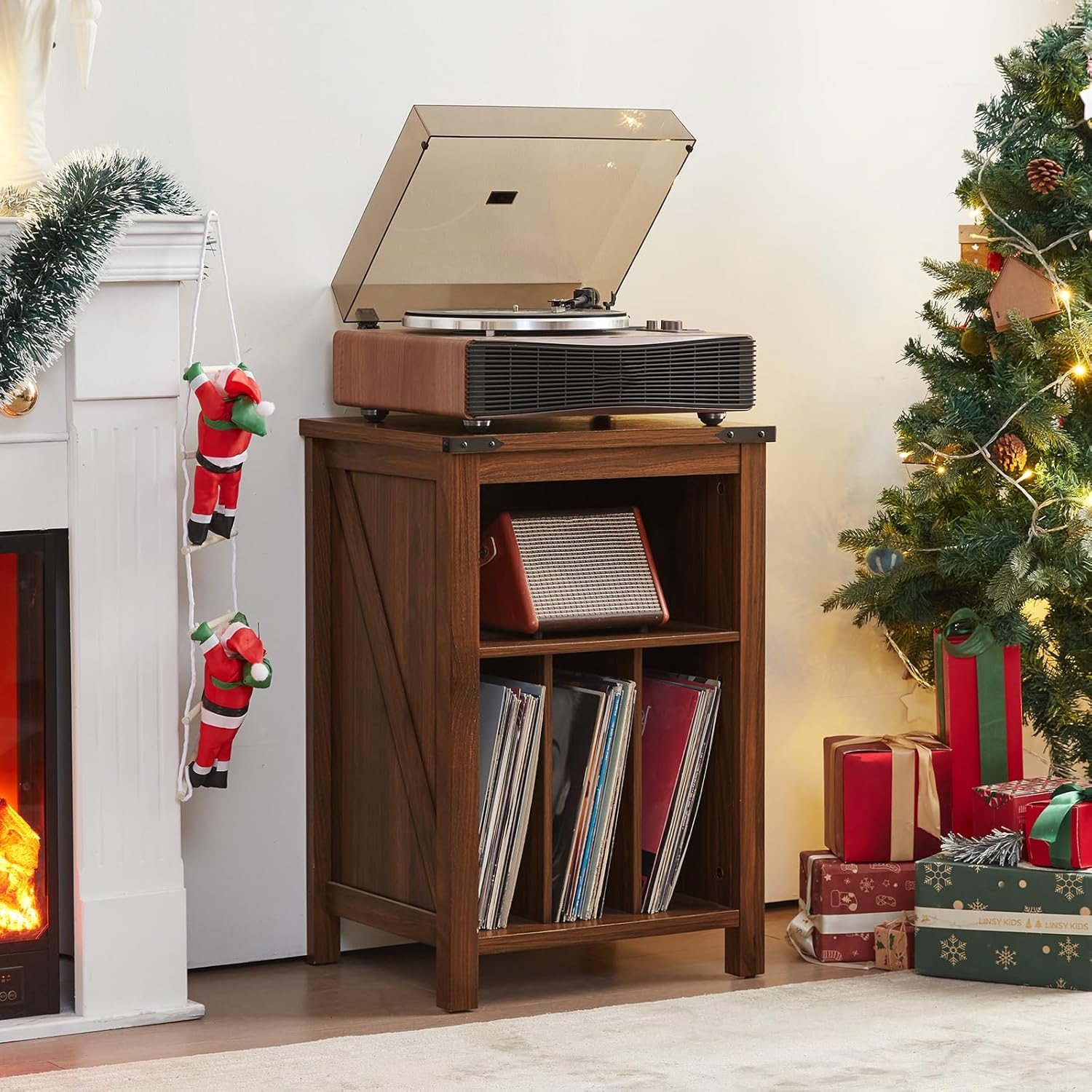 - 【Huge Record Player Stand】The top of the record player table is spacious enough to accommodate different sizes of record players, fulfilling the needs of record lovers. The large record stand is 19.68"D x15.74"W 29.01"H, capable of holding 160 records.The vintage-style record storage adds more artistic color to your home, allowing music to flow in your artistic abode.