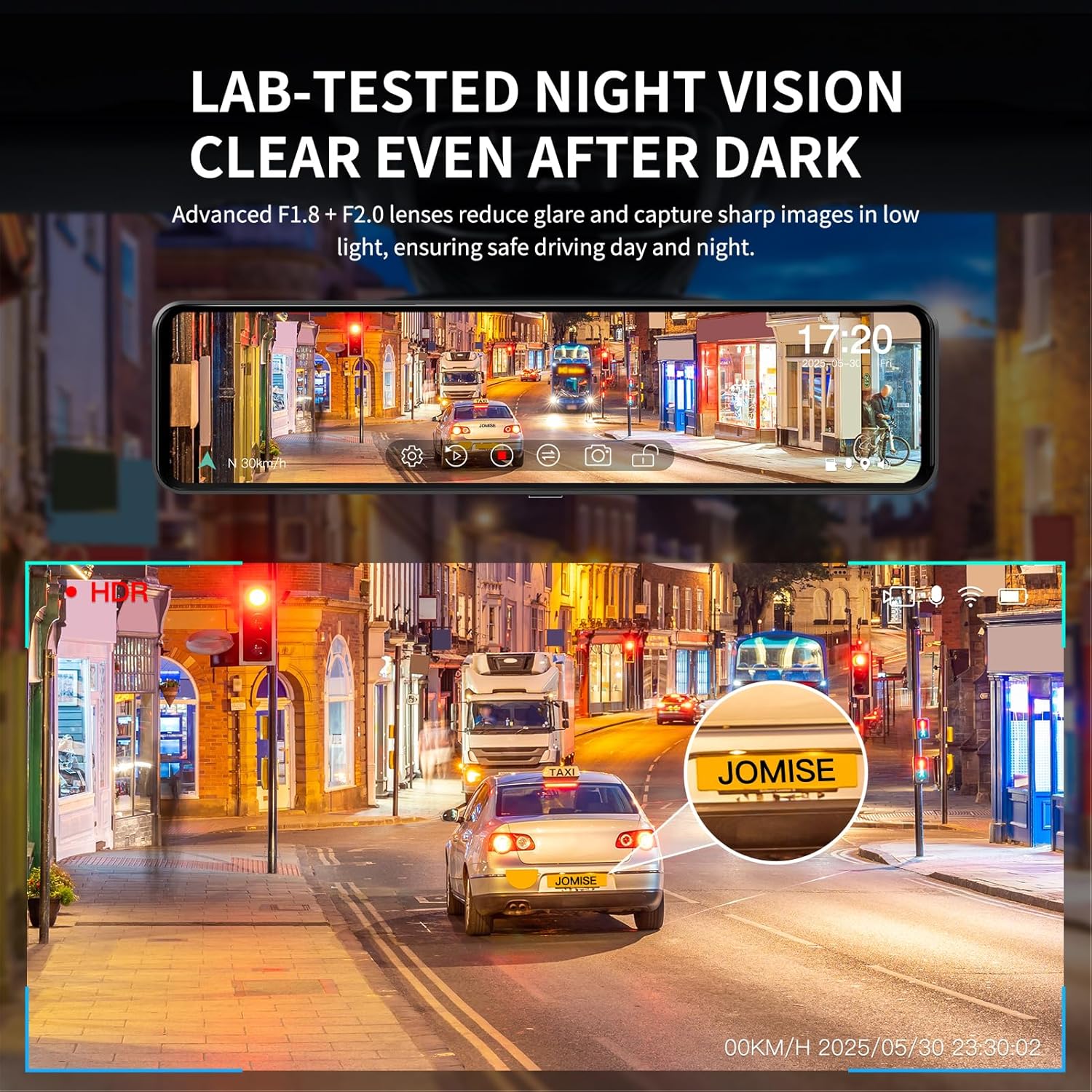 - 3X ZOOM + ULTRA-WIDE VIEW: Jomise 4K Mirror Dash Cam exclusive 3X rear zoom with a true ultra-wide view helps you park and drive with confidence — ideal for tight spots, trailers, and blind zones
