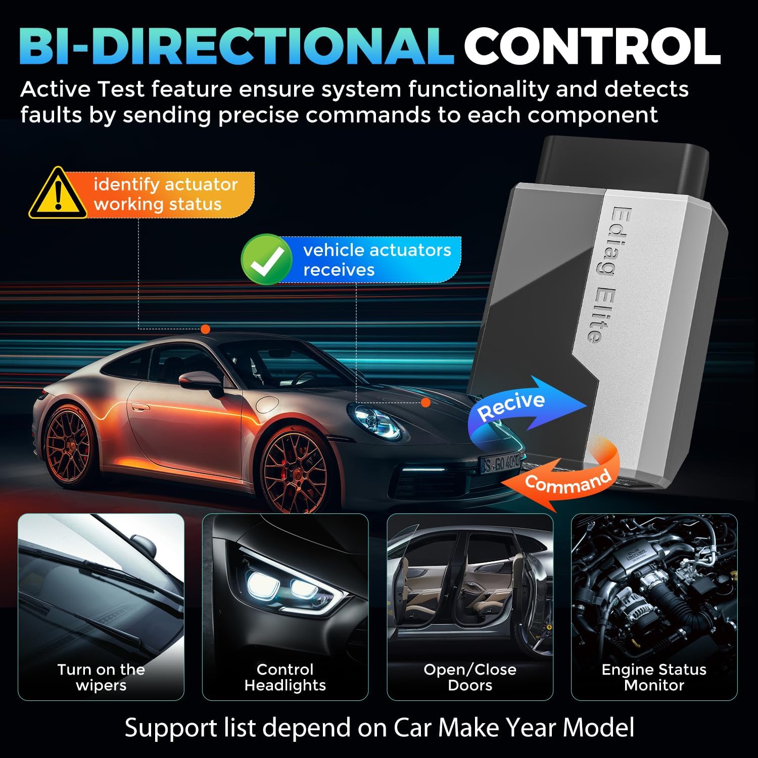 KINGBOLEN Ediag Elite OBD2 Scanner Bluetooth, Bi-Directional Control Scanner All System Diagnostic Tool for iOS & Android, 15+ Hot Reset, CANFD Protocol, FCA AutoAuth, No Subscriptions Lifetime Update