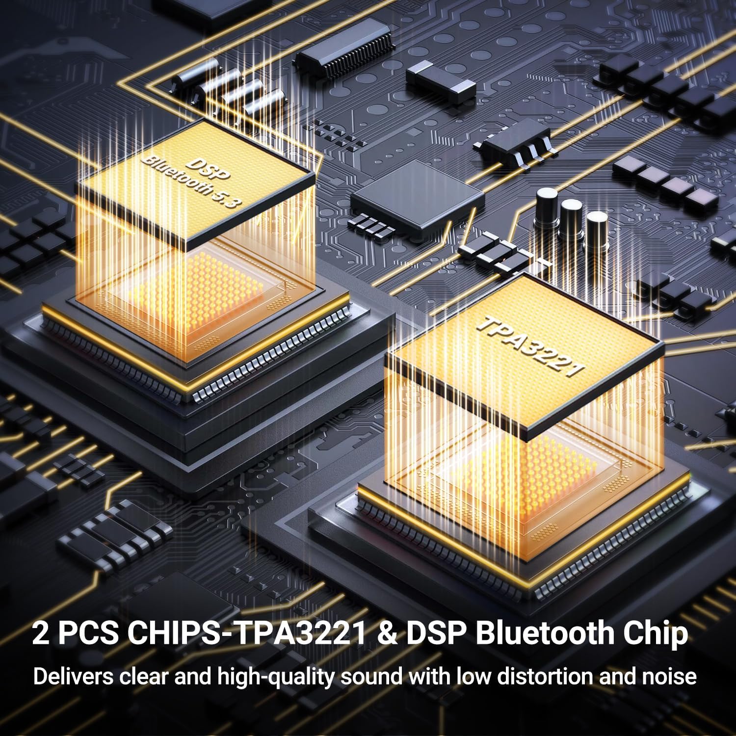 - Small but Powerful HiFi Amplifier: Dual-channel stereo amplifier provides you impressive 100W RMS per channel at 4 ohms, paired with the TPA3221 professional chip, allowing you to enjoy high-quality amplified audio.