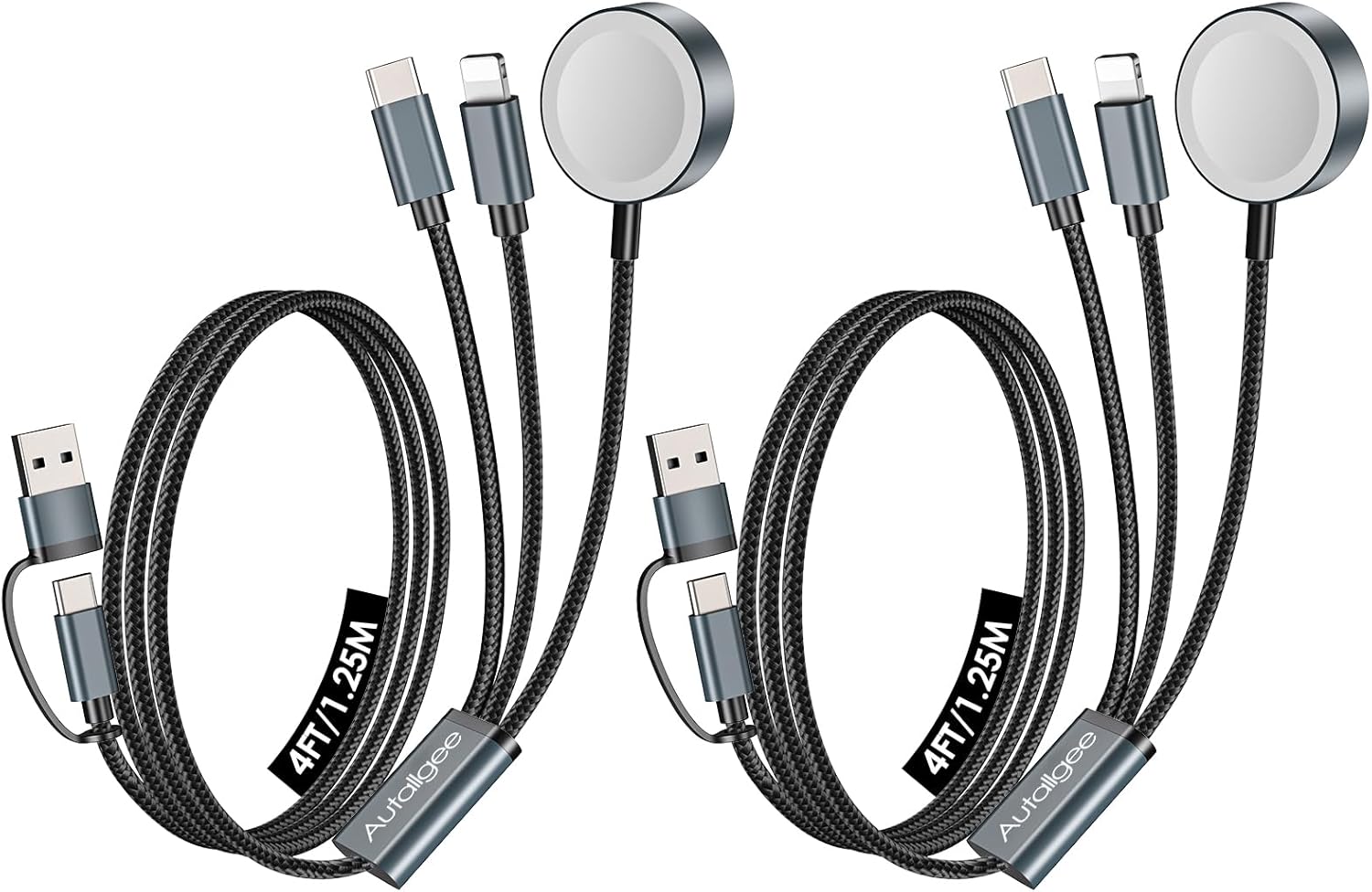 - 🎁Super 3 in 2 Multi-Function: Autallgee multi charging cable has 6 charging ways- USB C/A to iWatch charger & USB C/A to Lighting cable & USB C/A to Type C Cable. What's remarkable is that it can charge three different devices simultaneously,Our multiple charger cord is compatible with iWatch Ultra 2/Ultra/SE 2/SE/Series 10/9/8/7/6/5/4/3/2/1,【Please note it doesn't support charge Samsung watch】iPhone16/15/14/13/12/11/8/7 Pro/Max/Plus/AirPods 4/Pro 2, Samsung Galaxy S24/S24+/S24 Ultra/S23/S22/S21/S20.