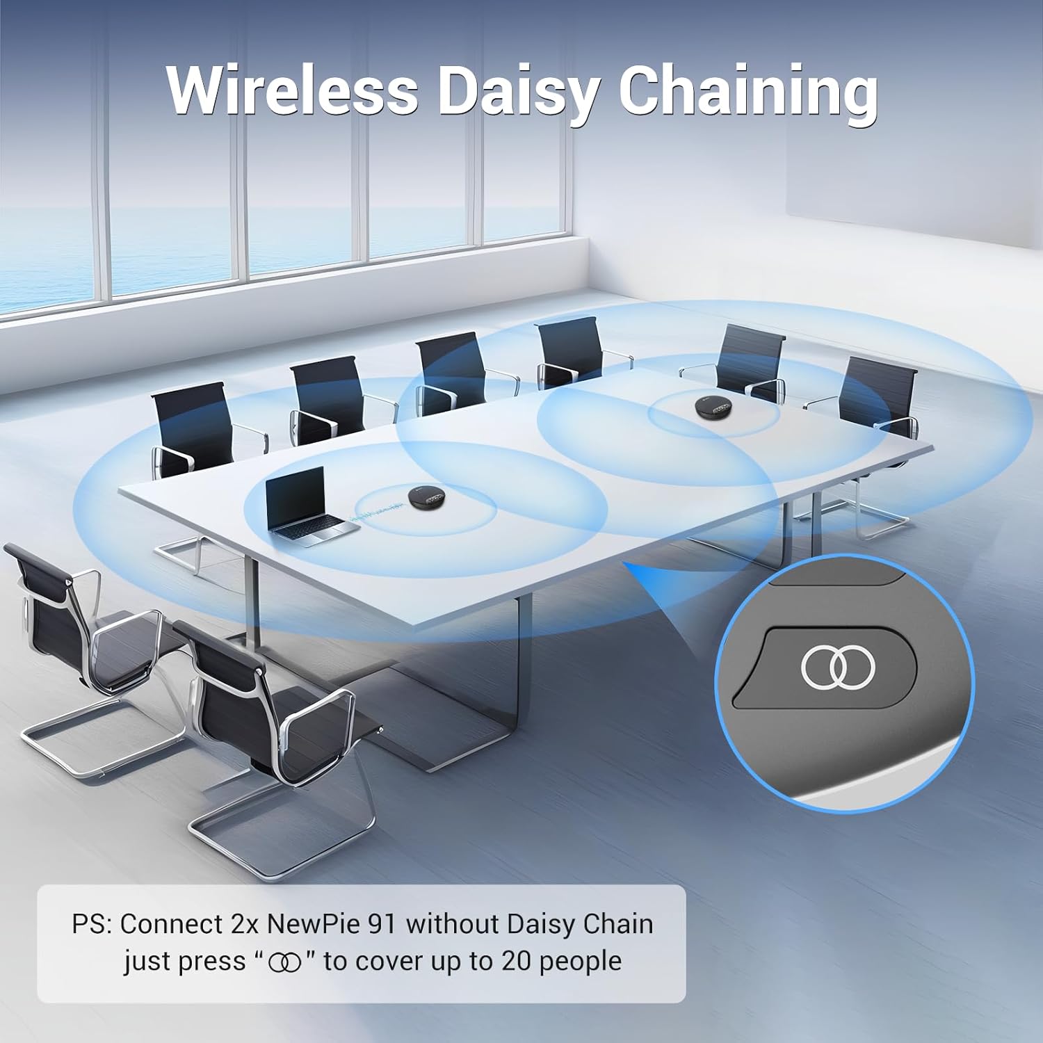 - Expandable and Versatile: Link two NewPie 91 units without daisy chain for extended coverage, supporting up to 20 attendees. Compatible with popular conferencing platforms like Zoom, Skype for Business, and WebEx