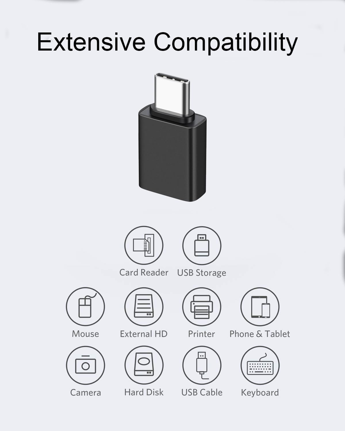 - Widely Compatible: Transform any USB-C port into a USB-A port and connect up a wide range of USB-A devices including external hard drives, phones, mice, printers, Type C laptops, tablets, OTG phones including Samsung Galaxy S24,S23,S22,S21,S20, MacBook Pro after 2016, MacBook Air after 2018, iPad Pro and can be used with 2 mm thick phone cases and more.
