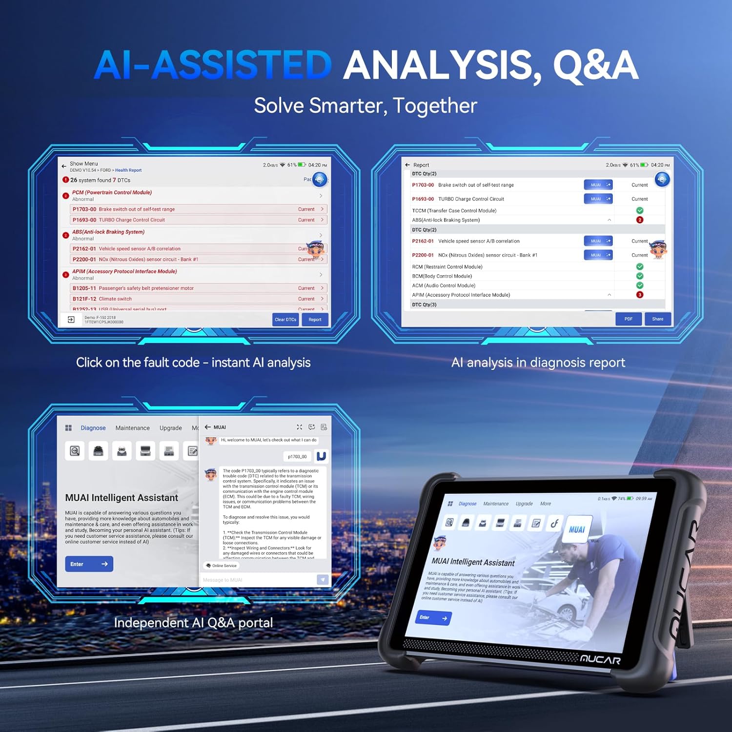 - 【AI-assisted Diagnostic Tool】:Revolutionize your vehicle diagnostics with the MUCAR 892BT OBD2 Scanner, powered by cutting-edge AI technology. Its intelligent AI system instantly retrieves and analyzes fault codes, delivering precise, tailored solutions to streamline repairs. Engage the built-in AI chatbot for real-time troubleshooting support, making diagnostics faster and smarter. Ideal for DIYers and professionals, this scanner ensures accurate, efficient results across most vehicles.