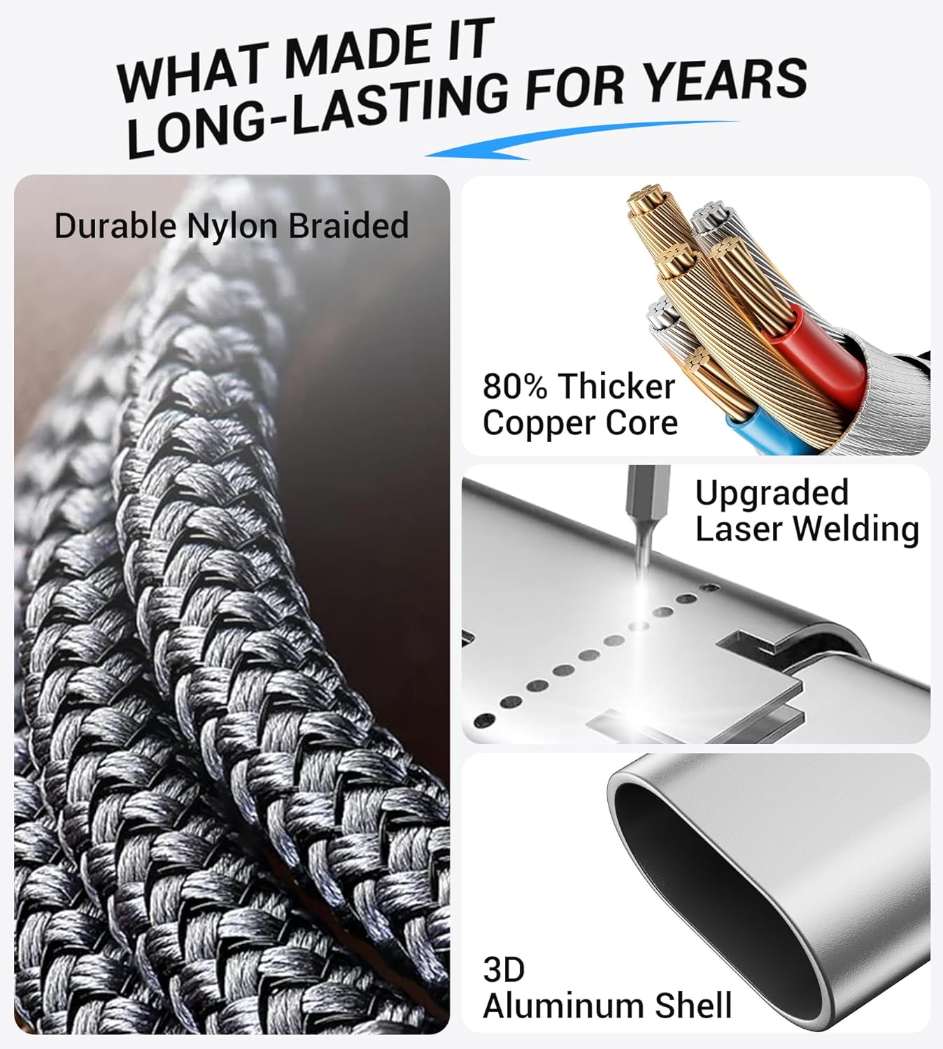 - ăHigh-Quality MaterialsăCrafted with durable nylon braid and a laser-welded 3D alloy connector, this multi-charging cable withstands 45,000+ stretch tests while offering Long-term limited warranty support for iPhone charger cord or multi-device charger replacements