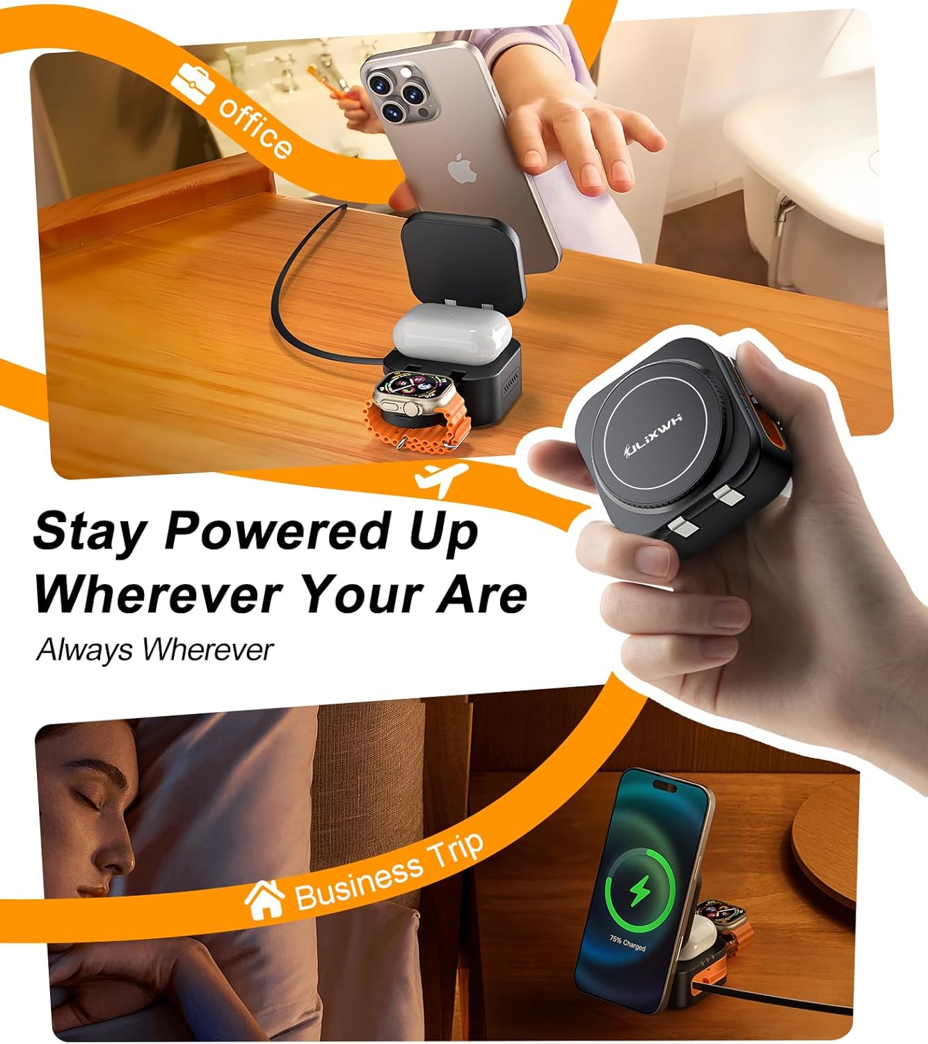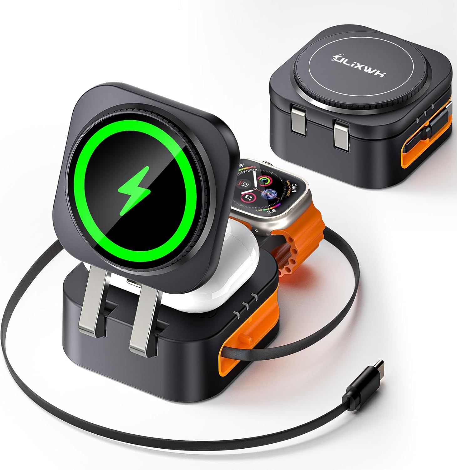 - 3-in-1 Exclusively for Apple Family Travel Essentials, 2025 Updated a one-stop iOS Standby wireless charger solution for your iPhone, Apple Watch, and AirPods, Apple for iPhone MagSafe charger station combines a compact design with powerful performance, and innovative retractable cable design makes convenience even more extreme. A practical choice for personal needs or as a gift, apple wireless charger for iphone providing convenience and reliability on the road and in life