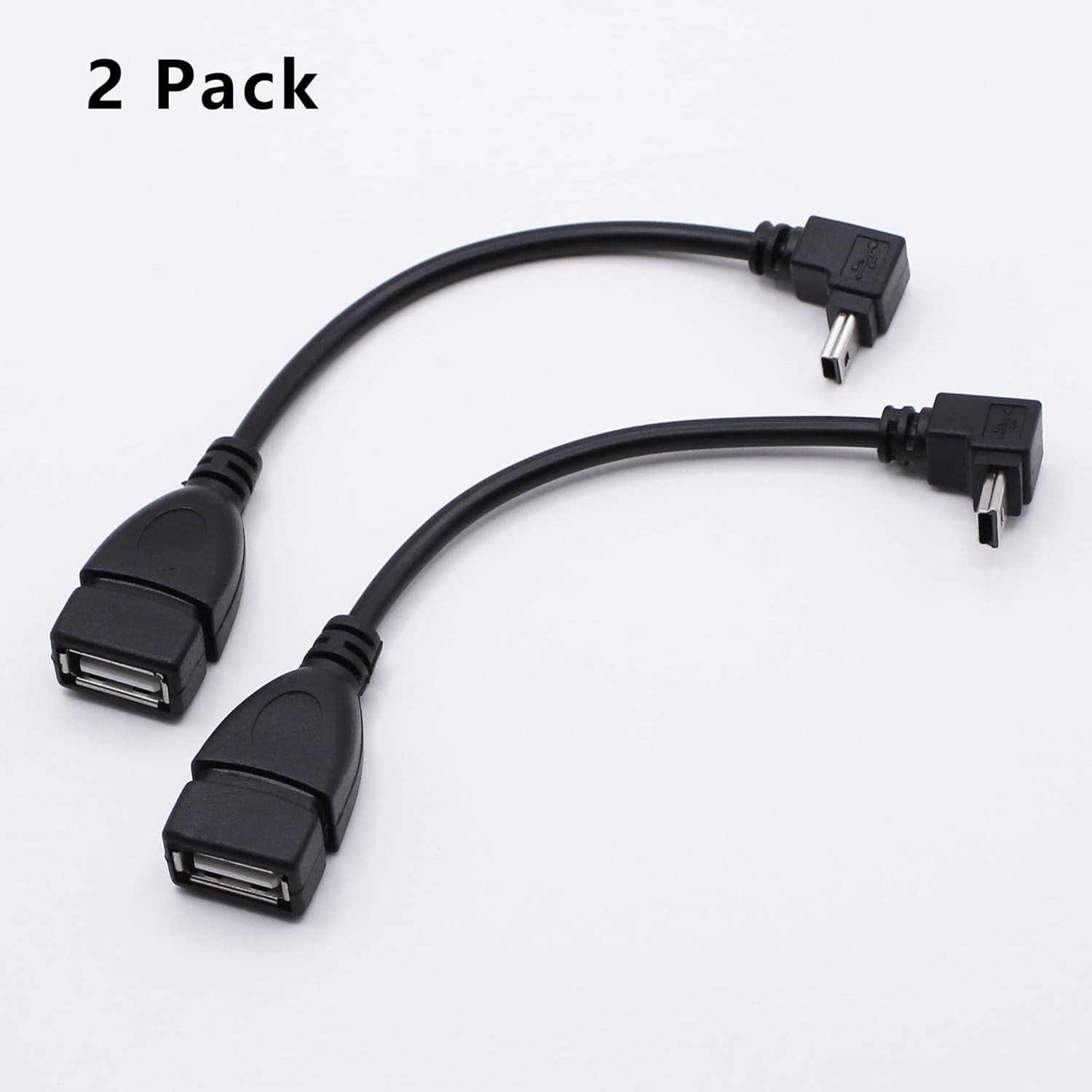 90 Degree Mini USB to USB A OTG Adapter Cable 5.5in Down Angle Mini USB 5-Pin Type B Male to USB Type A Female Adapter Cord for Digital Cameras,Black,14cm(2 Pack,Down)