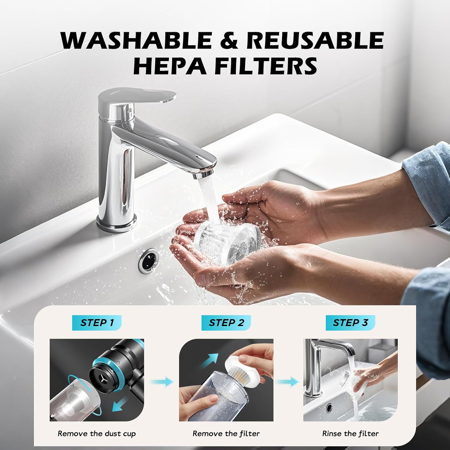 - 2 Washable & Reusable HEPA Filters:The cordless portable car mini vacuum includes 2 HEPA filters, which ensures cleaning by effectively trapping dust and particles. The filter is washable and reusable, allowing for long-term use and easy maintenance.Important: Always install the filter before use to prevent debris from entering the vacuum and causing damage