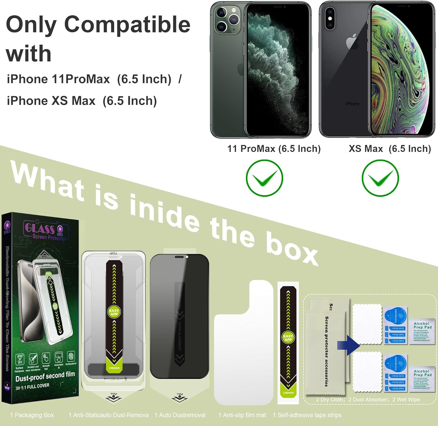 (2-Pack Anti-Spy Privacy Screen Protector for iPhone 11 Pro Max/XS Max(6.5-Inch),9H Tempered Glass,Full Coverage,Anti-Fingerprint,Auto Dust Removal,Bubble-Free,Easy Installation