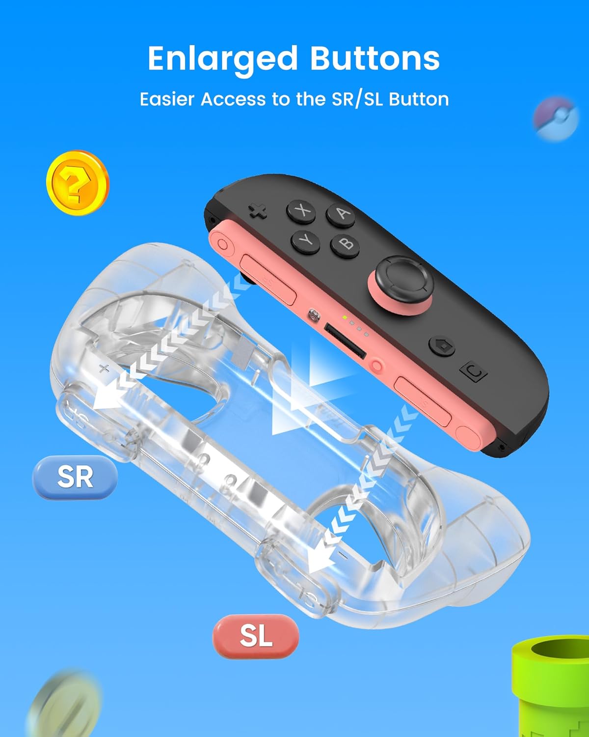 - Ergonomic Joy Con Grip with Enhanced SL/SR Buttons: Features a scientifically curved palm design that reduces hand fatigue during marathon sessions. Strategically enlarged and raised SL/SR trigger buttons offer effortless, precise input for faster reactions in intense games.