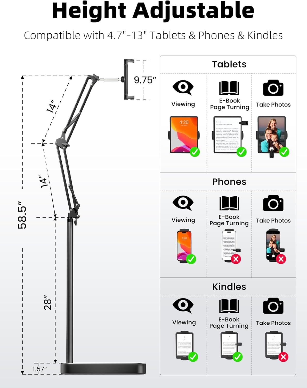 - 【Kindle Holder with Remote Page Turner】This floor stand, paired with a Kindle page turner, frees your hands and makes reading effortless—perfect for long eBook sessions. Whether you're in the bedroom, living room, or office, it's the ideal combination for comfortable reading and viewing with your Kindle.