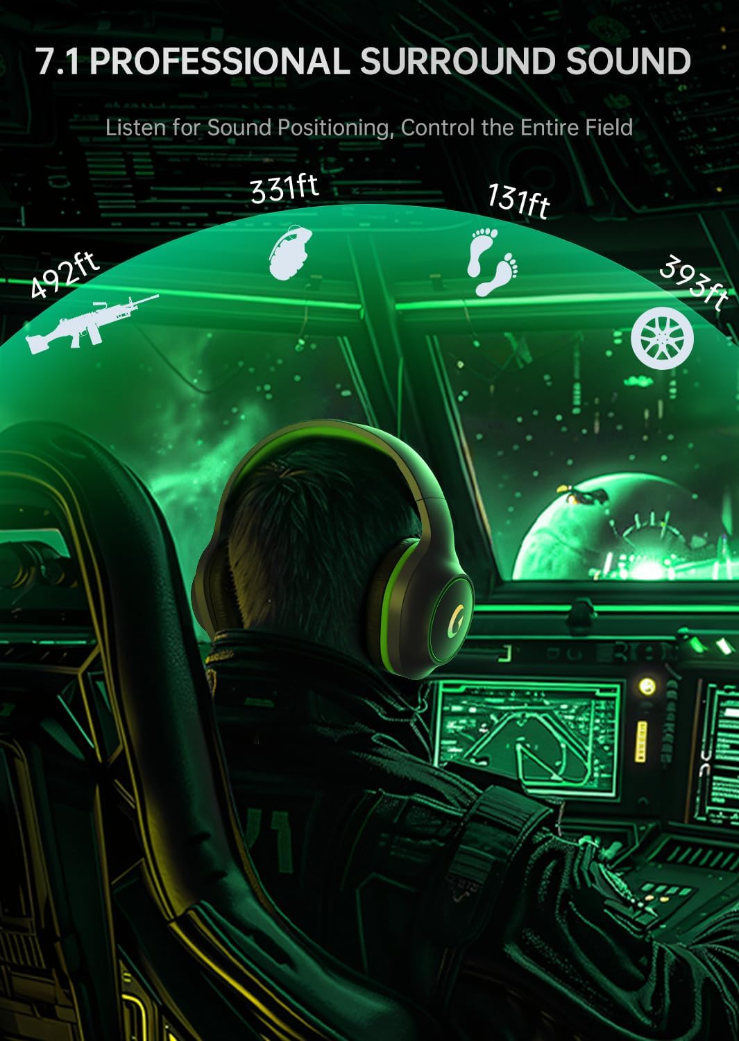 CM7002 Gaming Headset for PS5, PS4, PC, Mac, Switch, Xbox Series, Surround Sound RGB Gaming Headphones with Noise Canceling Microphone, 50MM Dynamic Drivers, 3.5MM Audio Jack, Black Green