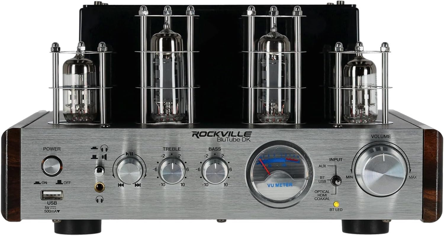- PURE AUDIOPHILE SOUND – The Rockville BluTube DK delivers warm, rich sound with tube amplification, producing 25W x 2 RMS @ 8Ω and 35W x 2 RMS @ 4Ω, perfect for home audio enthusiasts.