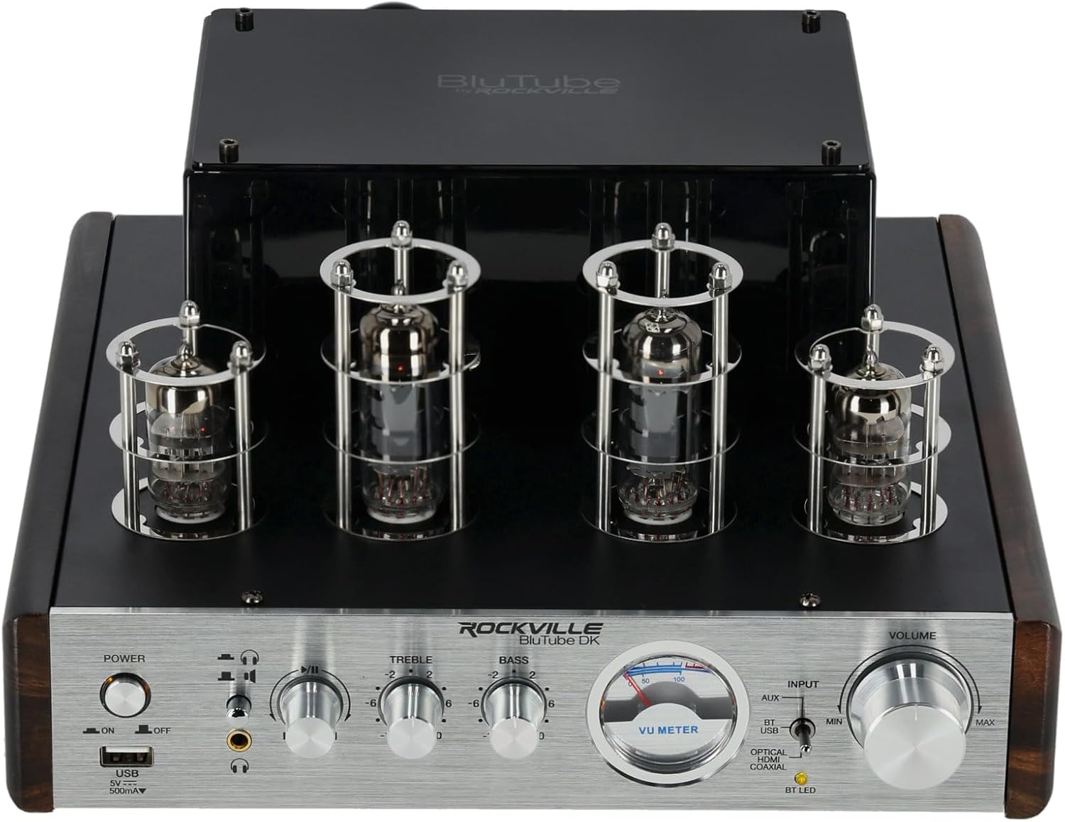 Rockville BluTube DK Audiophile Tube Amplifier with Bluetooth, 35Wx2 RMS @ 4 Ohm, HDMI/Optical/Coaxial Inputs, Sub Output, USB, RCA, VU Meter, Headphone Out