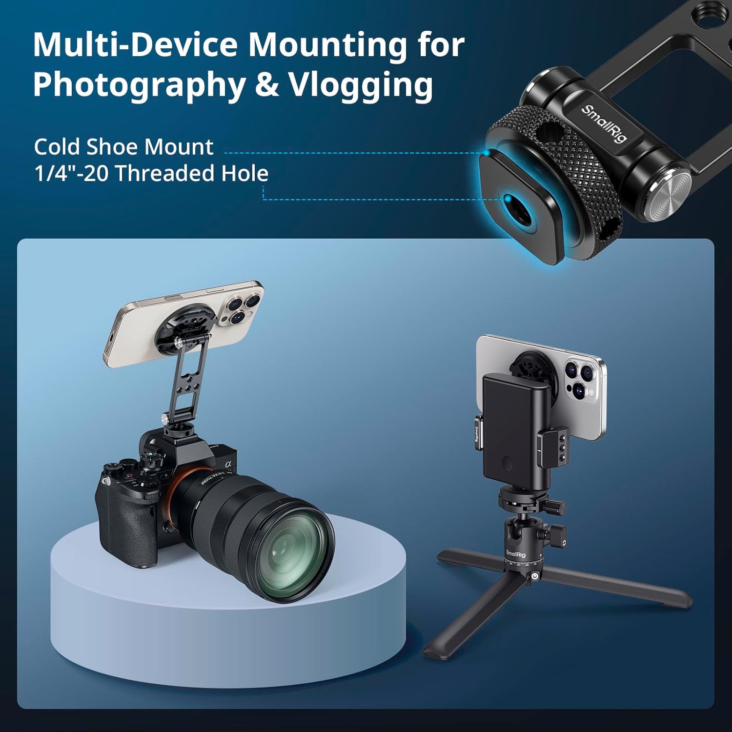 SMALLRIG Magnetic Metal Phone Mount with Cold Shoe Mount, Adjustable Rotatable Phone Tripod Holder Adapter for iPhone 17/16/15, Camera Monitoring, Tripods, Stabilizers - 5156
