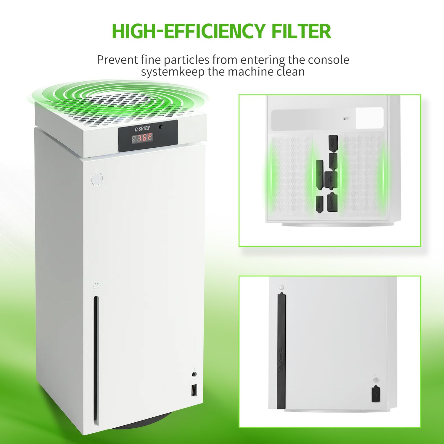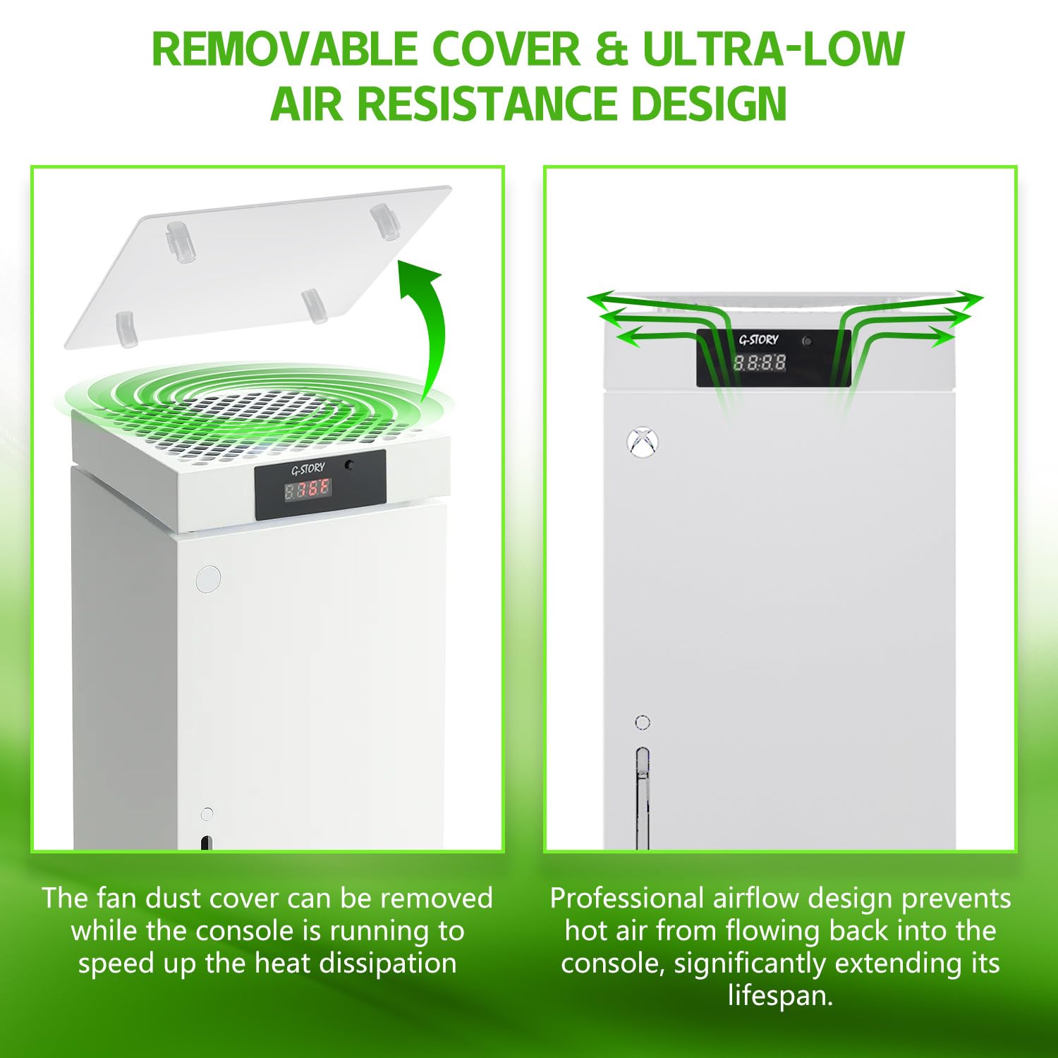 - 🍃Intelligent Control & Custom fan speed-[Automatic Mode]: The chip of G-STORY Xbox Series X cooling fan can automatically sense the temperature to adjust the fan speed, you can just enjoy the game and leave the heat to our cooling fan. (when the temperature is <35℃/95℉, it will stop working.) [Manual Mode]:Press the button to select the 3 speed you need, the LED will change color with the speed. (Note: Press down the button for 3s to switch between manual and automatic mode.)