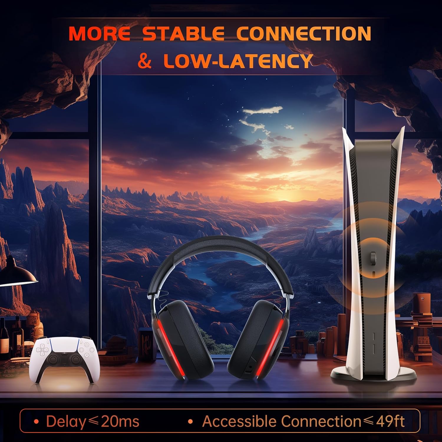 - Stable Connection & Stereo Sound: Gtheos Captain 300 wireless gaming headset combines high performance 2.4GHz lossless wireless technology for the accessible connection up to 49 feet in an unobstructed space. Lower latency (≤20ms) and featuring 50mm driver with 30% extra sound effect ensure that the wireless gaming headphones provide higher quality stereo sound, which makes you sense voice of directions, footsteps and every details clearly in games for a better immersive gaming experience. This ps5 headset is very suitable for Fortnite/starfield/Call of Duty/PUBG