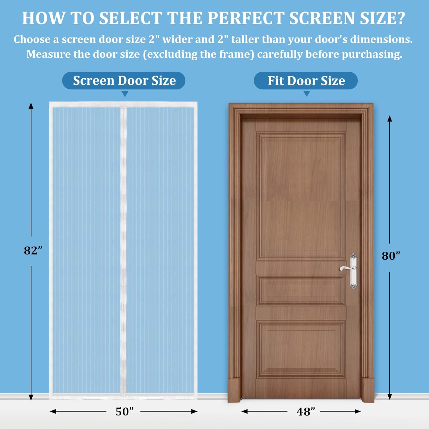 - Self-Sealing Magnetic Closure: The magnetic screen door features a full-length magnetic strip for effortless hands-free entry and exit. It automatically seals behind you, keeping bugs, mosquitoes, and pests out while letting fresh air in.