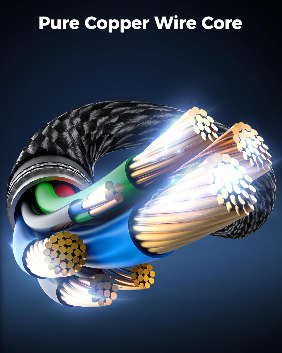 - Quality Improvement:Cratree 8k HDMI cable used for the full core copper factory level factory,quality assurance. There are 4 layers of shielding inside the line,which effectively reduces signal loss and has the characteristics of strong anti-interference ability.The outer layer has the key protection of PVB and nylon.Strictly after the swing head and function test, plus the anti-oxidation 24K gold-plated connector and anti-interference tinplate