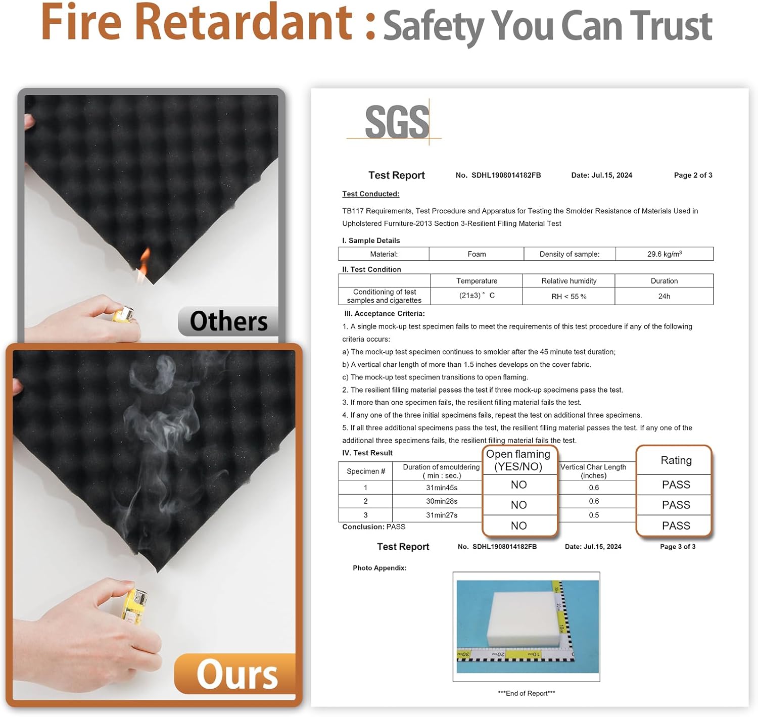 - đ„ăHigh-Density & Flame-ResistantăMade from thick, fire-retardant polyurethane foamâsafe, long-lasting, and built for reliable performance.