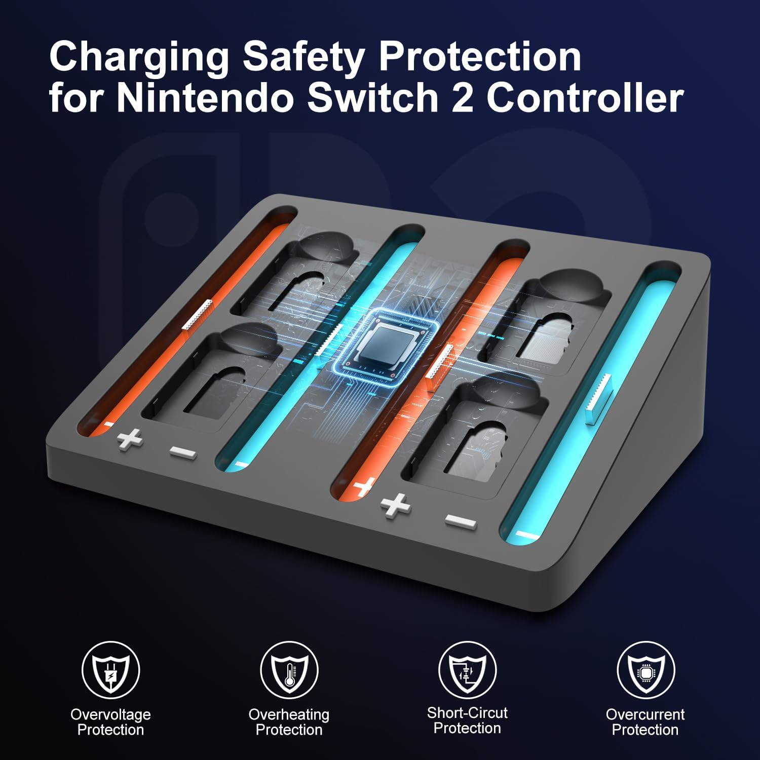 - 【Support 4 Switch 2 Controllers】: The charging stand can support to charge 4packs nintendo switch 2 joypad controllers simultaneously, fast charging speed can make your gaming process more fluent