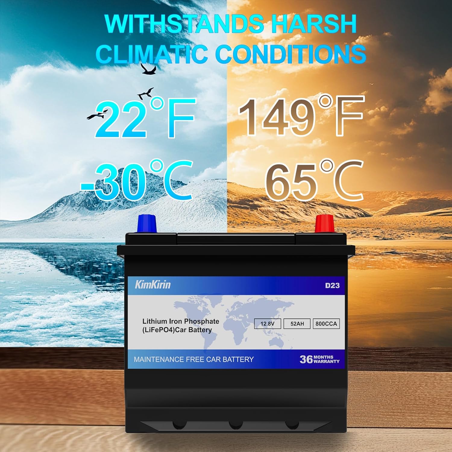 XINGCELL Kim Kirin12.8V 52Ah LiFePO4 Car Battery Group 35/D23 – Lithium Iron Phosphate Deep Cycle Battery with 800CCA High Cranking Power for Start-Stop Cars RV Marine Solar
