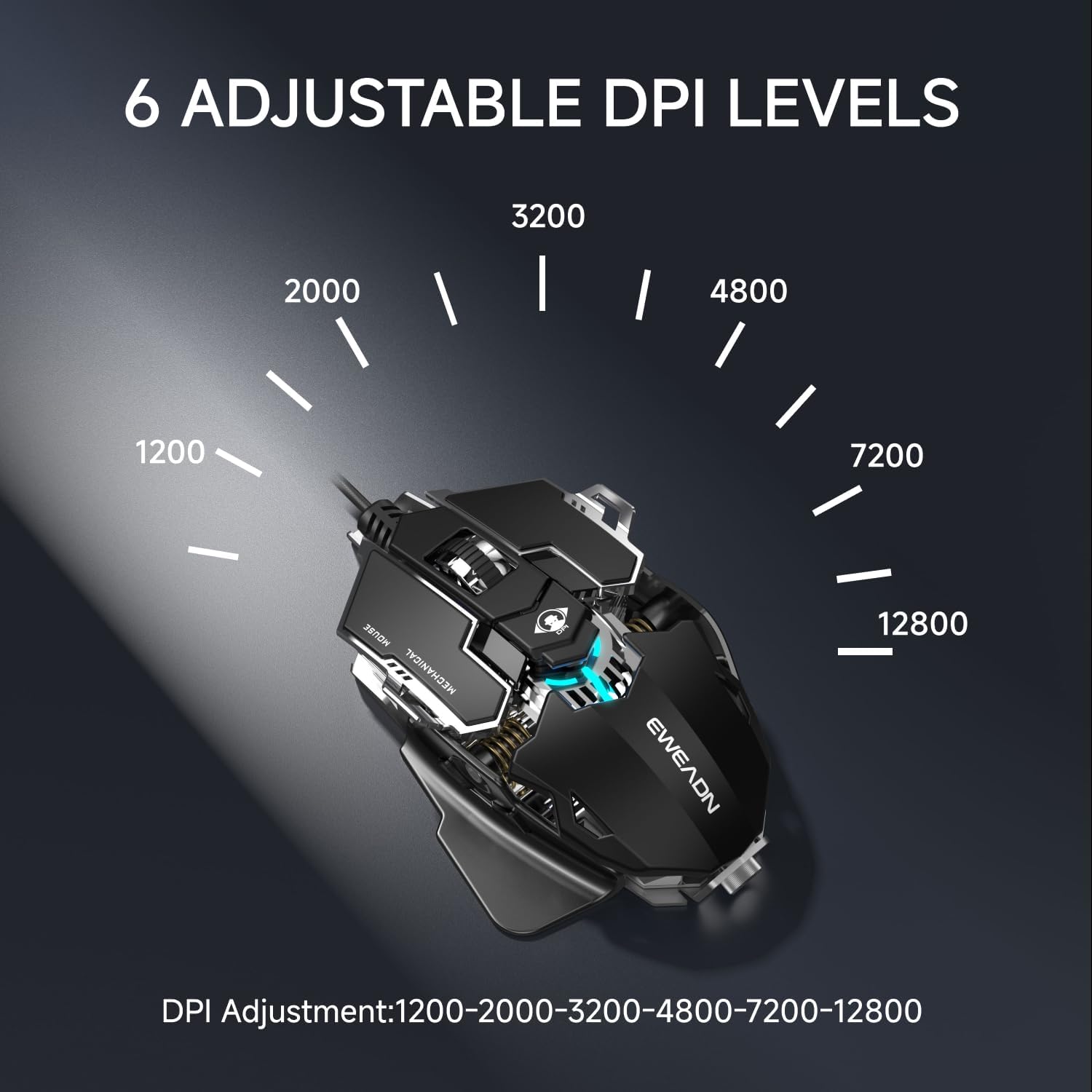 - 6-Level Adjustable DPI: The EWEADN G5 computer mouse features up to 12,800 DPI with 6 adjustable levels and an ultra-fast report rate (125–1000Hz), meeting your multiple needs, either for daily work or gaming. Dedicated demand for DPI options between 2000-12800 is available to be processed by software.