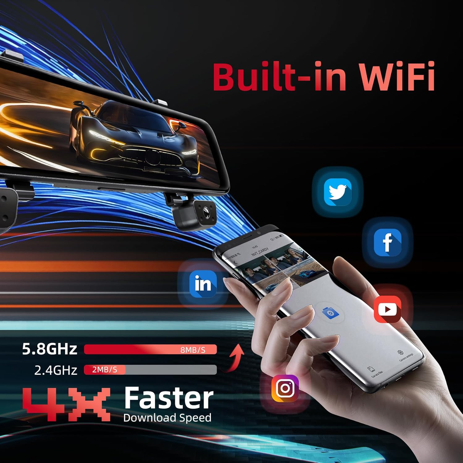 - Special Feature : 12" Touchscreen Car Camera, 360 Rear View Mirror Camera, 4 Channel Dashcam, 5G WiFi&APP Control, Built-In GPS 12" Touchscreen Car Camera, 360 Rear View Mirror Camera, 4 Channel Dashcam, 5G WiFi&APP Control, Built-In GPS