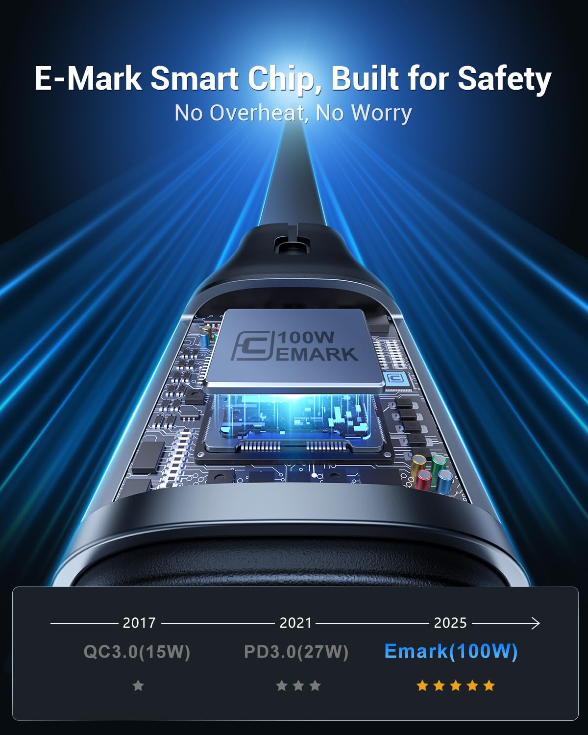- 100W Hyper-Fast Charging with Intelligent Safety: Our multi phone chargers for all devices features an E-Marker chip and premium pure copper wires for blistering 100W speeds. Charge a MBook Pro 16" to 38%, Galaxy S24 Ultra to 80%, or Phone 15 to 75% in just 30 minutes! Smart technology automatically switches to gentle trickle mode at 80% to prevent overheating/overcharging - your device's battery health is our priority. The ultimate retractable phone charger for car, home, or office use.