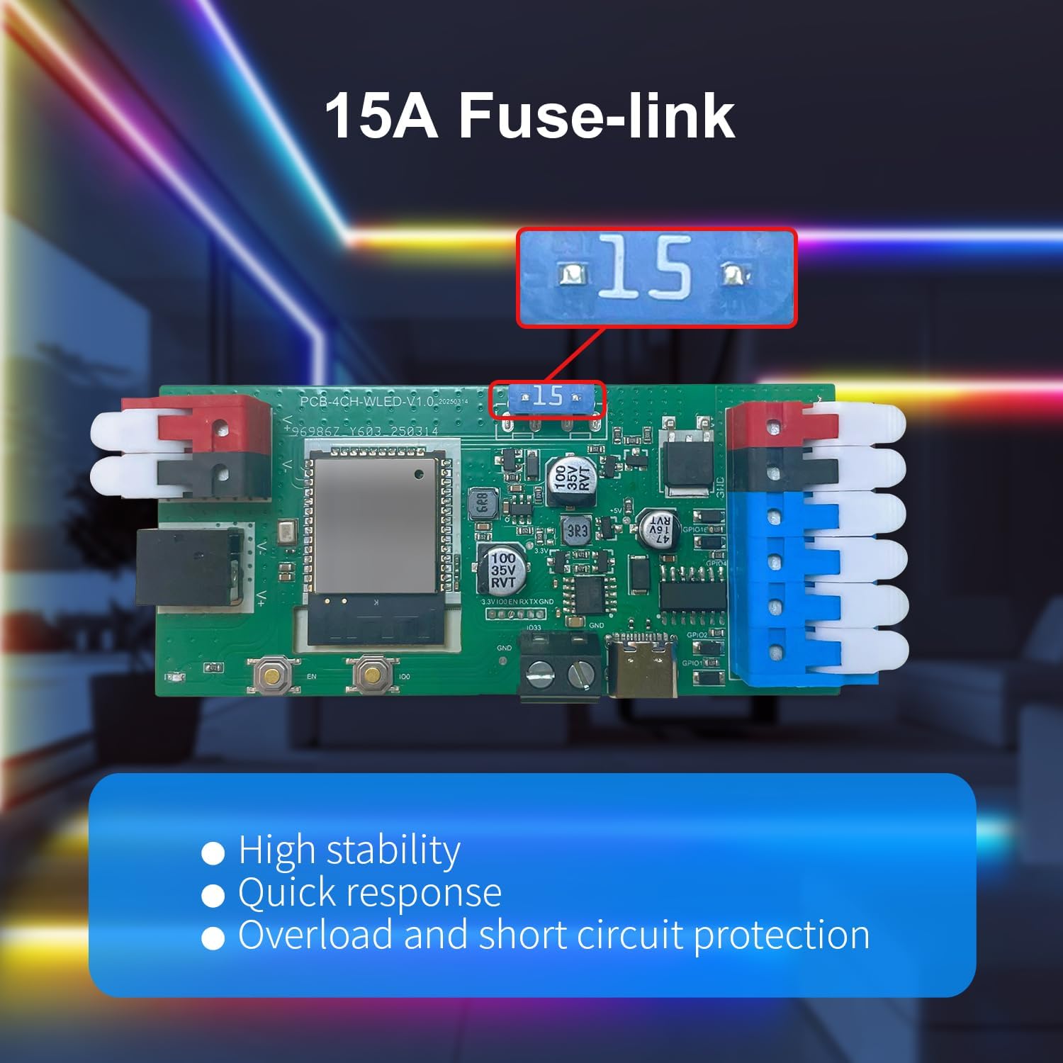 - Triple-Layer Safety & Energy Efficiency: 15A overcurrent protection fuse + energy-saving relay + Level Shifter IC for stable signal transmission, ensuring safety and efficiency for high-power setups