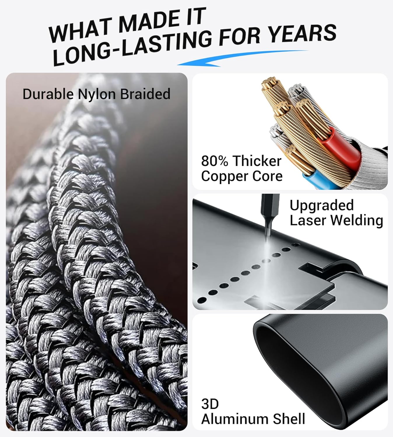 - ăHigh-Quality MaterialsăCrafted with durable nylon braid and a laser-welded 3D alloy connector, this multi-charging cable withstands 45,000+ stretch tests while offering Long-term limited warranty support for iPhone charger cord or multi-device charger replacements
