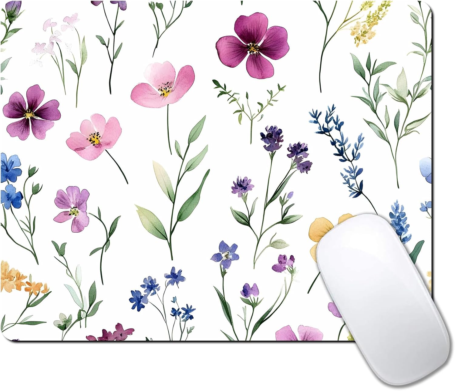 Watercolor Flower Wildflowers Floral Custom Mouse Pad with Non-Slip Rubber, Small Square Design for Wireless Laptop & Computer Mouse Pads for Desk, 9.5 x 7.9 inch Smooth Surface for Gaming & Office