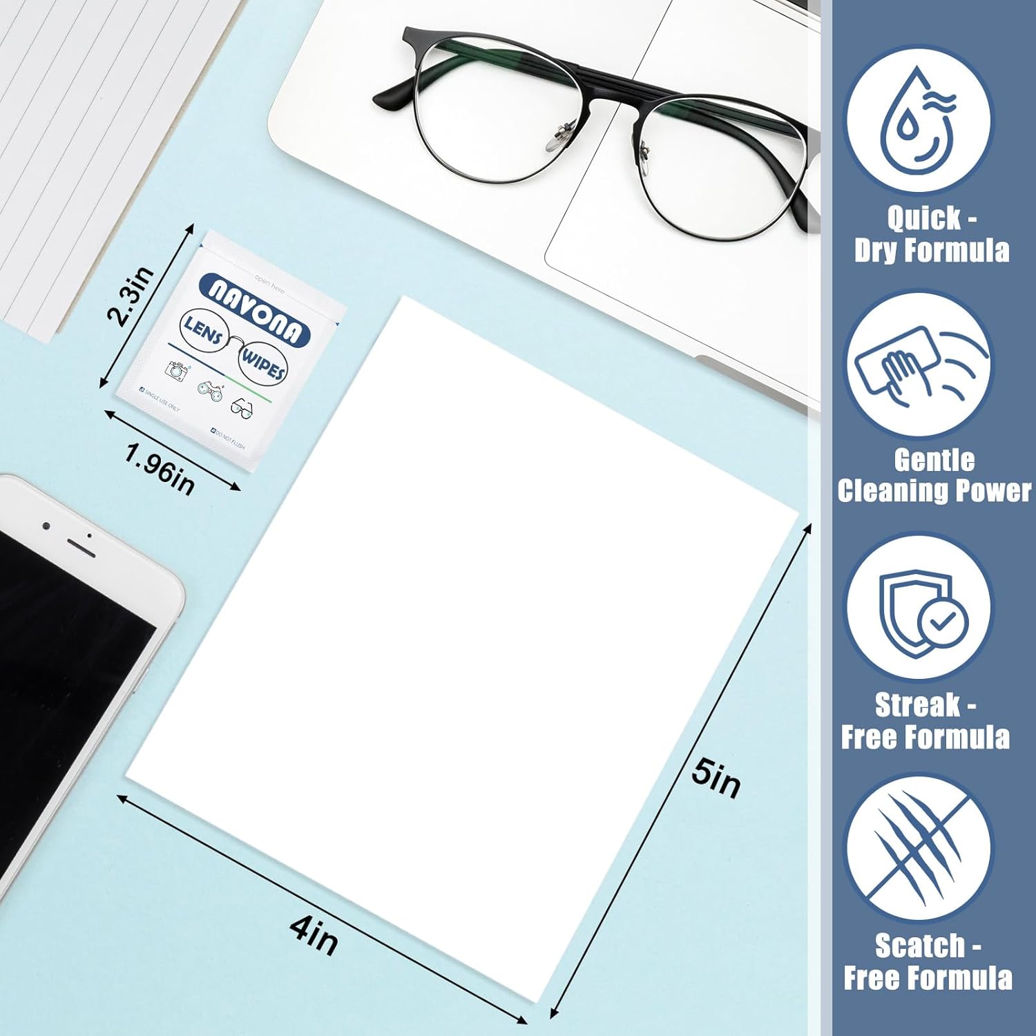 - 【Lens Wipes for Eyeglasses – Powerful & Gentle Cleaning】Our lens wipes for eyeglasses are pre-moistened with a gentle yet effective formula that removes dust, oil, fingerprints, and smudges in seconds. Use these glasses wipes on sunglasses, reading glasses, camera lenses, and more—for crystal-clear results every time.