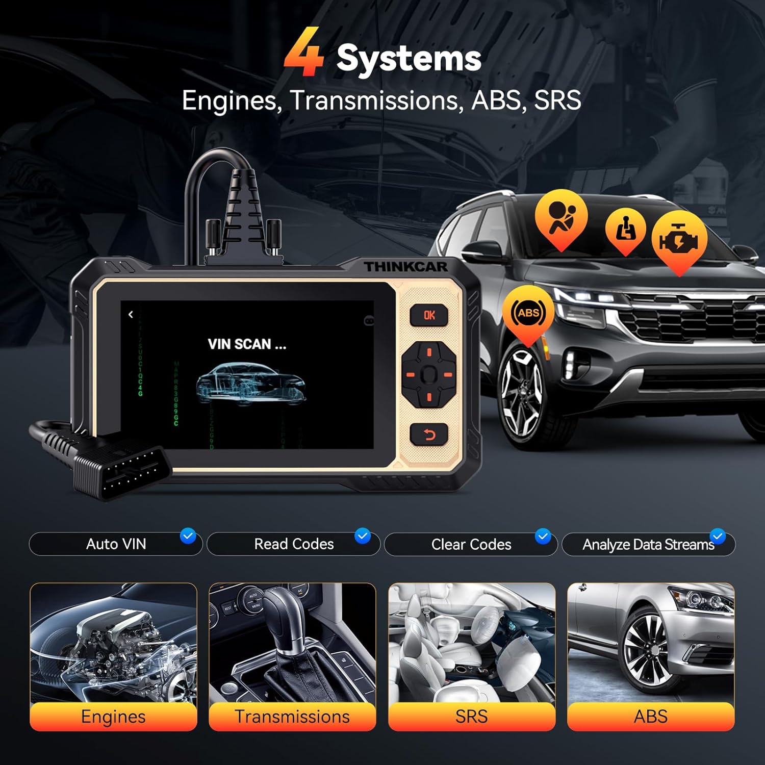 - 【Unlock Pro-Level Diagnostics With Half Costs】 THINKSCAN 662 obd2 scanner diagnostic tool Delivers Premium Scanning Power for Half the Price! The OBD2 scanner can handle common issues with ECM,TCM,ABS,SRS. It can easily read and clear fault codes, analyze data streams, and ensure quick identification of problems. THINKSCAN 662 bidirectional scan tool has 12 practical reset functions, including Airbag Reset,ABS Bleeding,BMS,Brake Reset, D.P.F,Throttle Adaptation,Injector Coding,OIL Reset,steering angle Reset,Gearbox,TPMS,and more. The car scanner diagnostic tool very suitable for DIY enthusiasts, car repair technicians, and small and medium-sized repair shops.