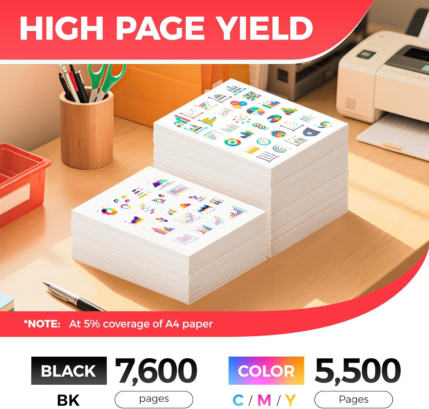 - High-Yield: up to 7,600 pages per 069H Black and 5,500 pages per 069H Color (Total 24,100 pages, 5% coverage).