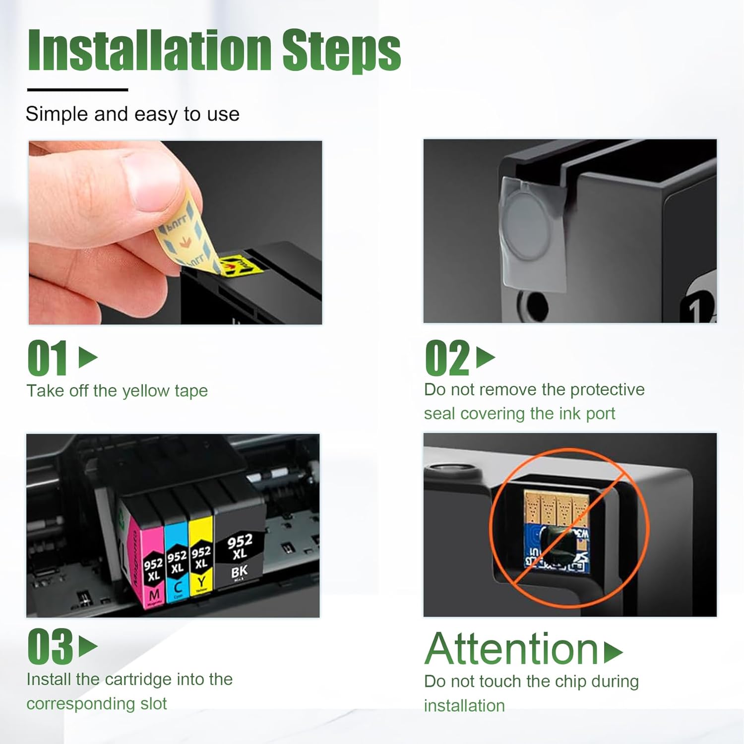 - Exceptional Clarity and Detail: Experience premium printing with 952XL cartridges, designed to produce bold, crisp text and rich, vibrant colors. Perfect for business documents, presentations, or personal photos, every print is sharp, clear, and impressive