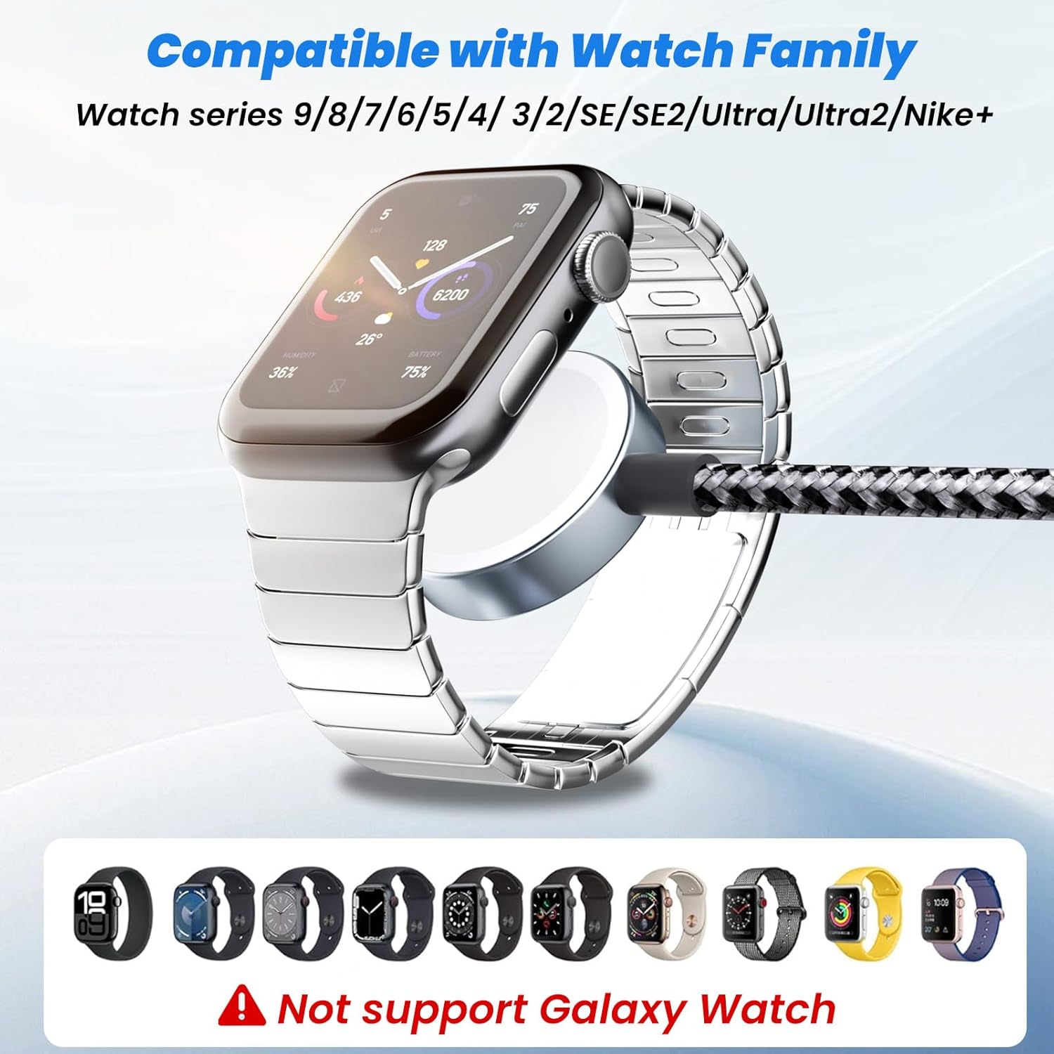 - 【MAGNETIC IWATCH CHARGER】With auto-alignment magnetic technology, this Dual Type C charging Cable effortlessly snaps into place, ensuring a secure and efficient charge as it automatically aligns with the back of your Watch.Its magnets are 30% stronger than standard chargers.(Note: Please remove protective cases for best results.Not compatible with Galaxy Watch.)