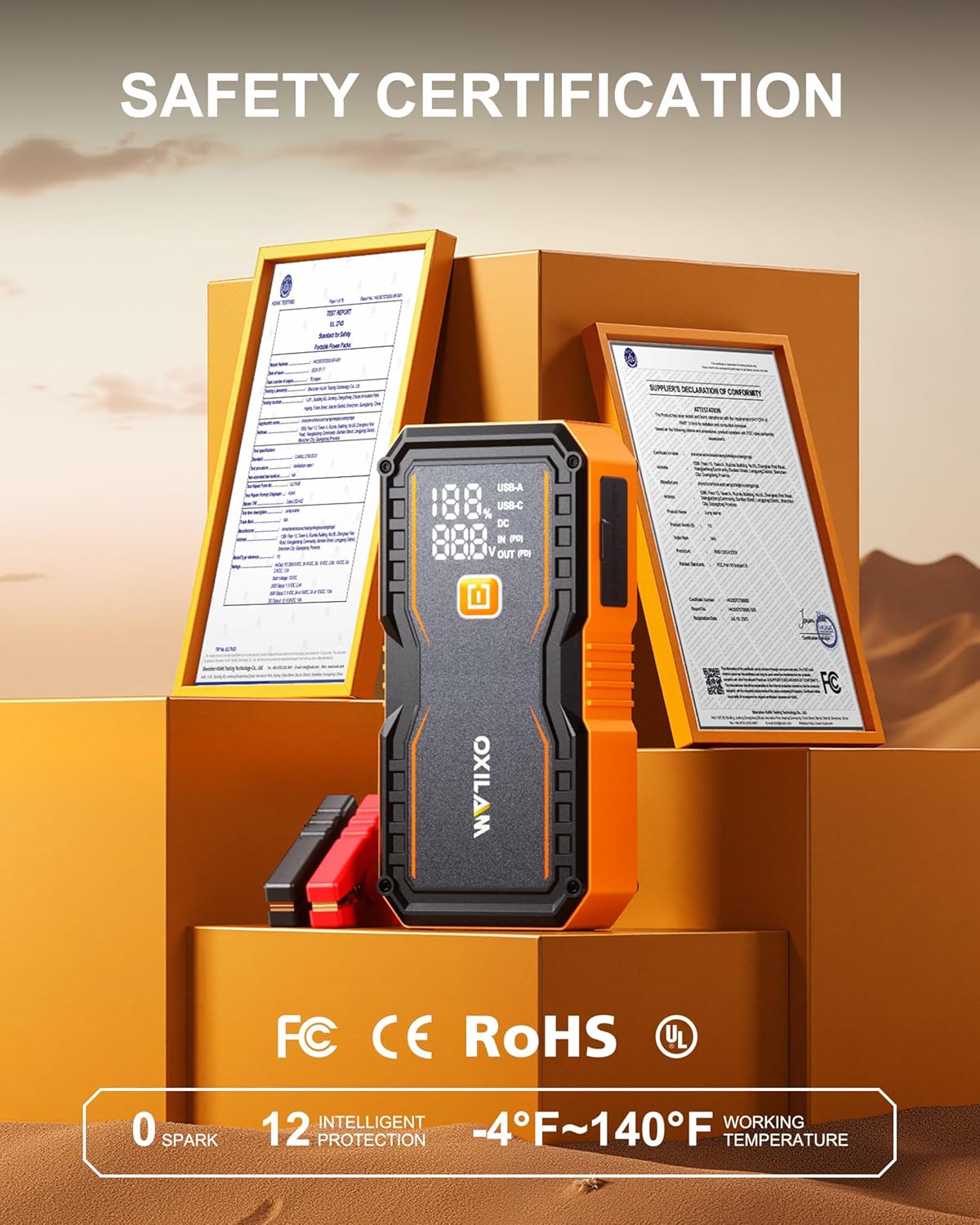 - ăSmart Display & Rugged, Portable DesignăEngineered for ultimate ease of use, OXILAM Battery jumper features a smart voltage analyzer for guaranteed hassle-free startsâno external booster requiredâand an LCD screen that clearly displays real-time status. Built with a waterproof, sturdy shell, a protective cover, and non-slip sides for a secure grip, its ultra-compact, lightweight design stores easily in any glove box or backpack, ready for any emergency