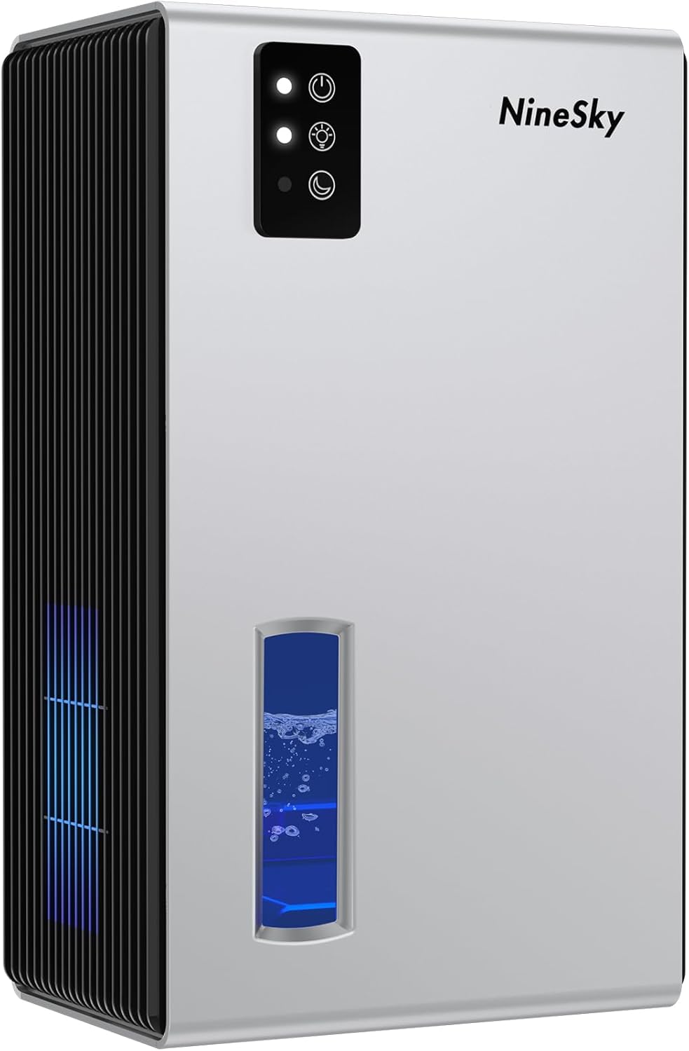 NineSky Dehumidifiers for Home, 95 OZ Water Tank, (1000 sq.ft) Dehumidifiers for Bathroom Bedroom Basement with Auto Shut Off,7 Colors LED Light(Silver)