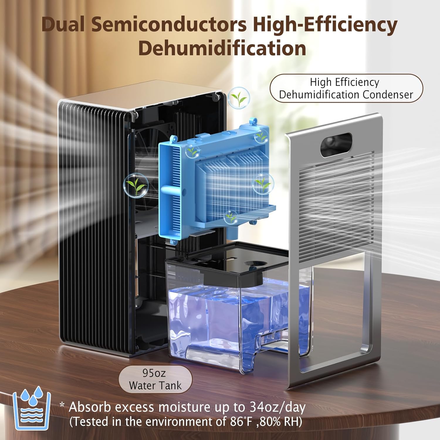 - ADVANCED HOME DEHUMIDIFIER: Our dehumidifier adopts semiconductor condensation technology with quiet operation. It efficiently removes moisture from the air to ensure a comfortable life.