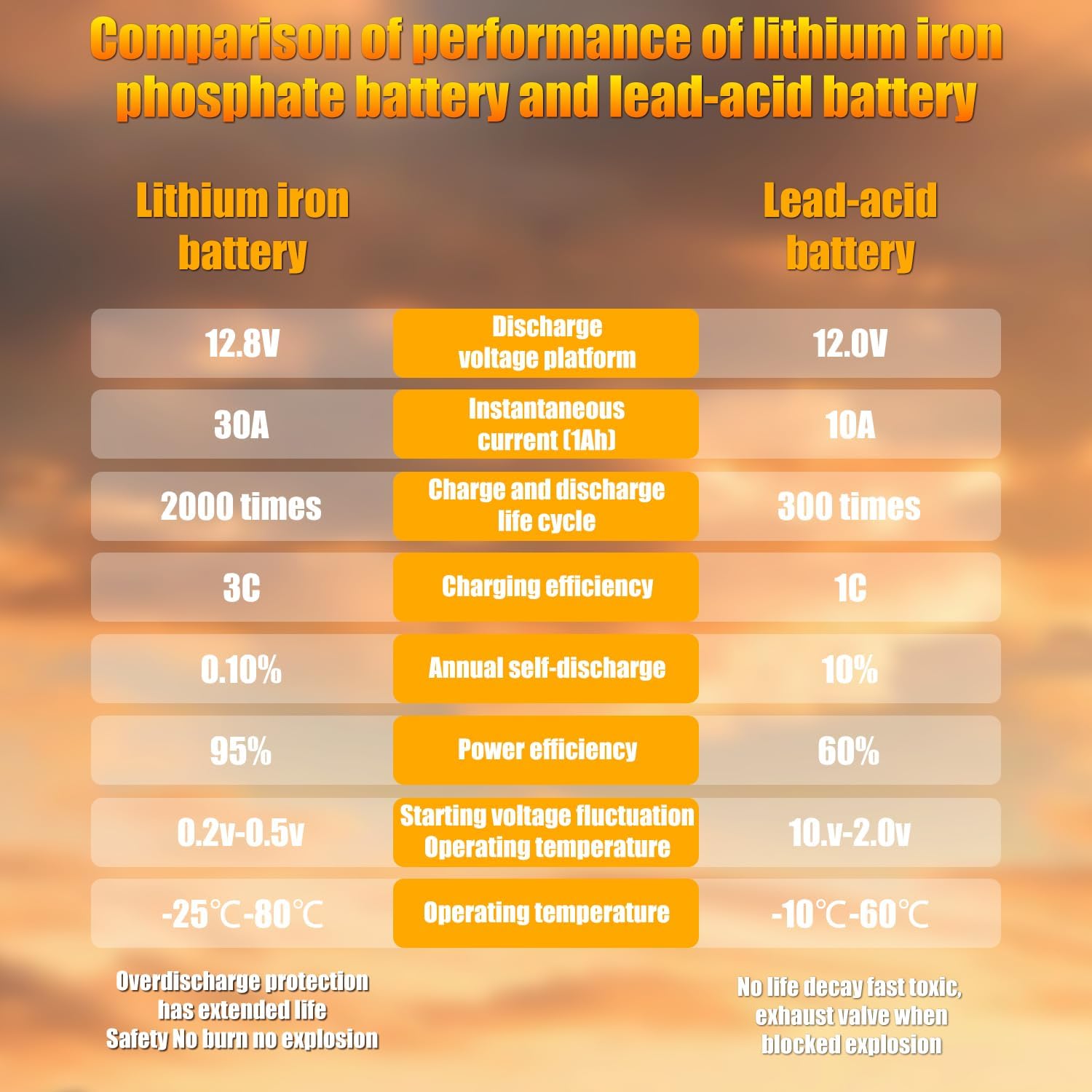 - Reliable Starting Power: Experience confident cold starts with Wuldnmar’s advanced lithium iron phosphate battery, engineered with high-rate power cells for consistent cranking power. With up to 1300A cold cranking amps (CCA) and a life span exceeding 50,000 engine starts, this 12.8V 80Ah battery outperforms lead-acid alternatives in both power and longevity—lasting 2–3x longer with up to 2000 deep cycles