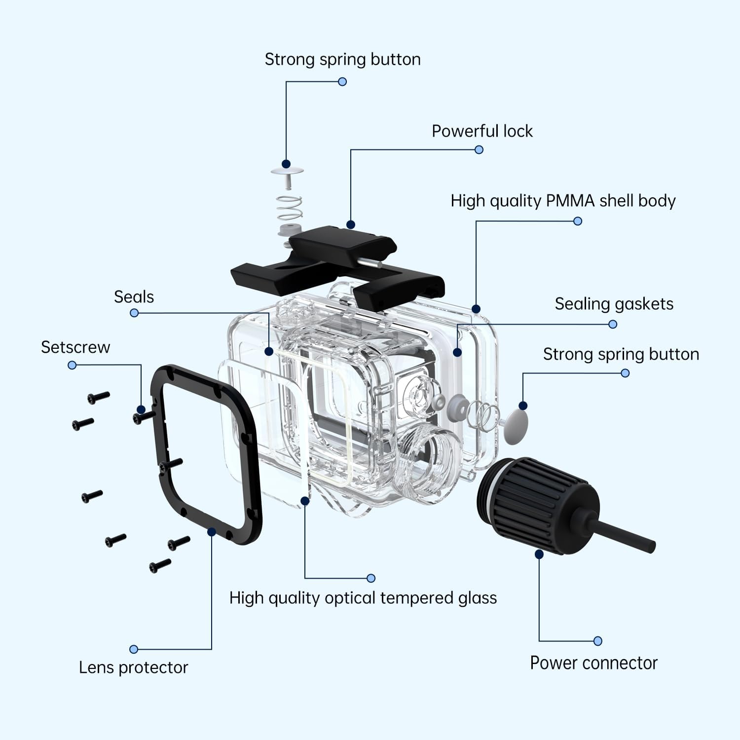 - Waterproof Up 164ft depth: Use this waterproof you can take your Dji Action 5/Action 4/Action 3 camera waterproof to 164 ft (50 meter). for deep sea diving and extreme activities.