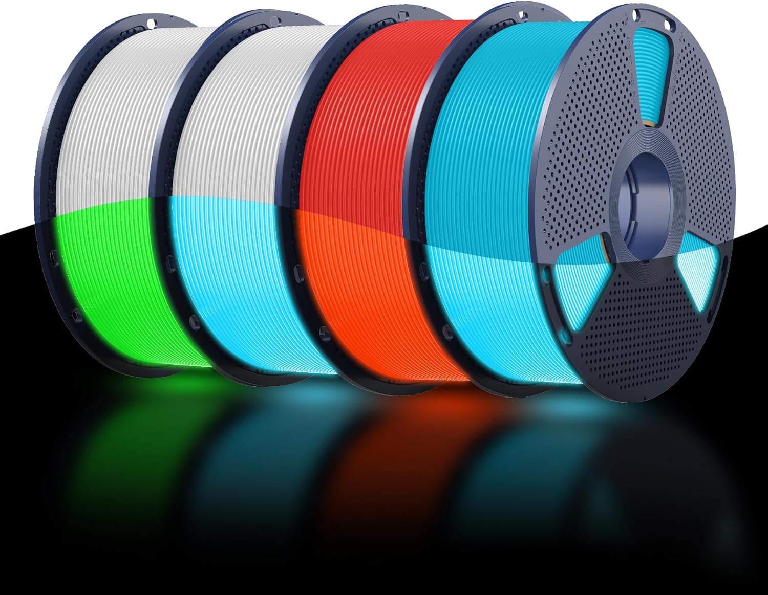 SUNLU PETG Glow in The Dark Filament Bundle,Luminous PETG 3D Printer Filament 1.75mm,Dimensional Accuracy +/- 0.02mm,4kg in Total,1kg per Spool,(White, Glow Blue/White, Glow Green/Glow Blue/Glow Red).
