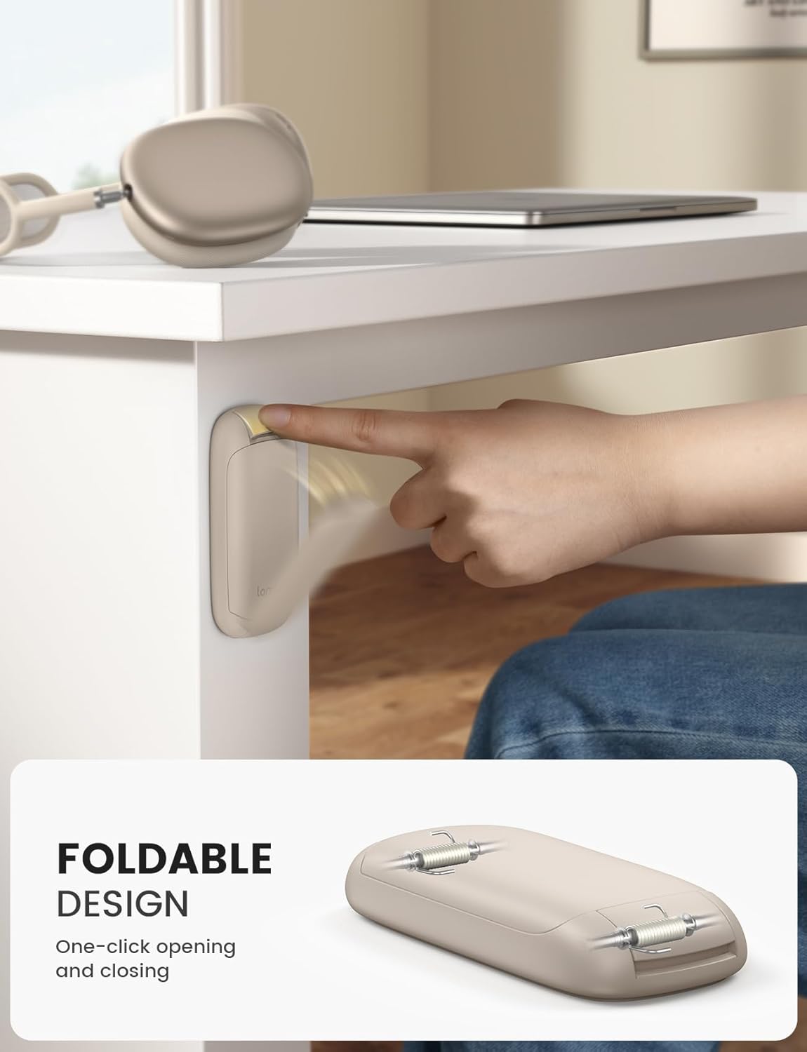 - 【Foldable for Easy Use & Storage】Experience ultimate convenience with our innovative headphone holder. It opens and closes smoothly with one hand, making storing and retrieving your headphones effortless. The entire stand is foldable, collapsing into a slim, flat profile that's incredibly space-efficient. Making it the perfect organization solution for your headphone.