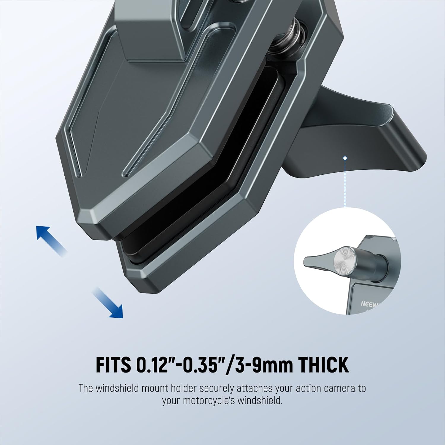 - 【Motorcycle Windshield Camera Mount】 The windshield mount holder securely attaches your action camera to your motorcycle's windshield, accommodating a thickness of 0.12" to 0.35" (3 to 9 mm), ideal for POV video recording, vlogging, live streaming, outdoor shooting, and other photography and videography as content creator essential accessories and influencer must have gear