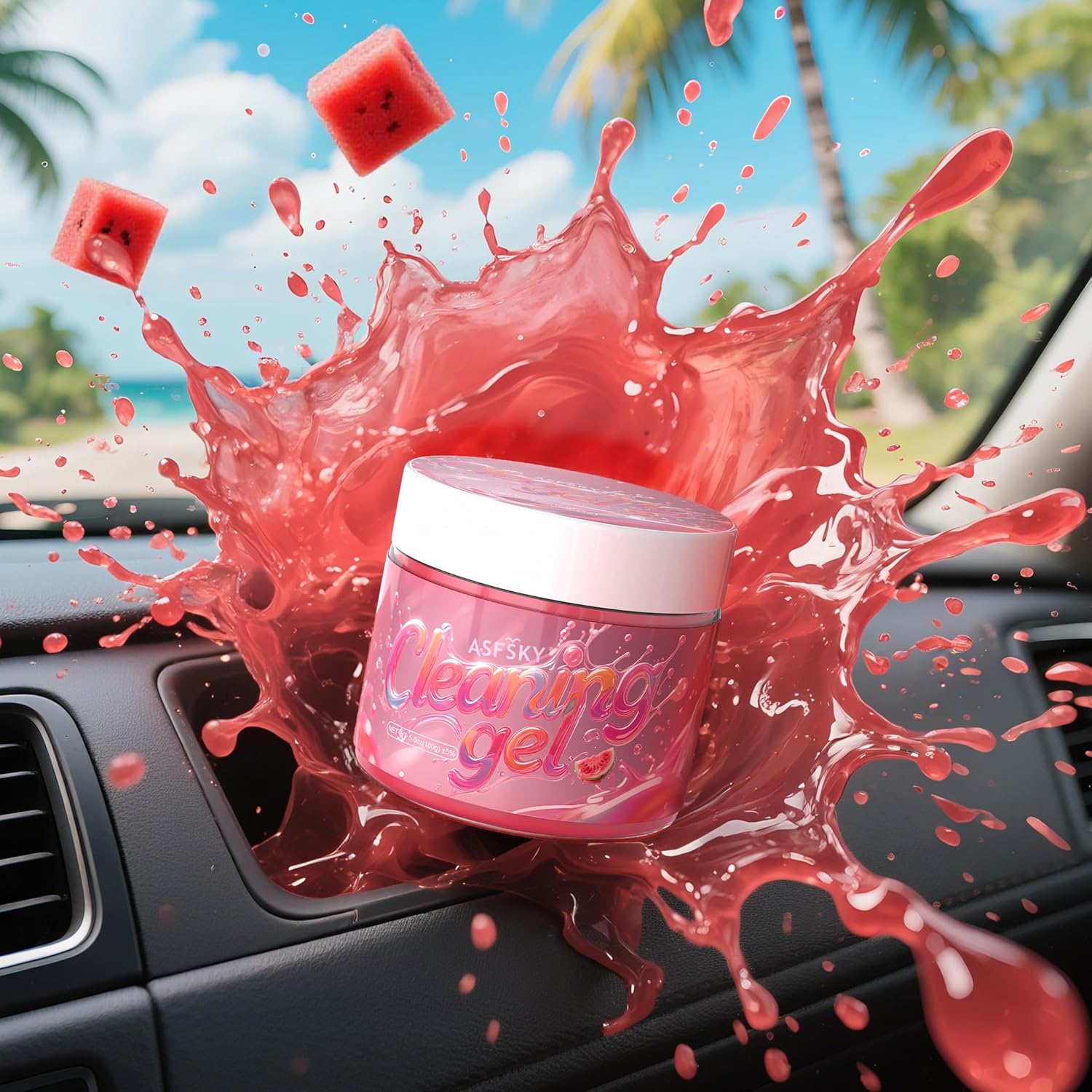 ASFSKY Car Cleaning Gel (Red,Watermelon) Cleaning Putty Universal Dust Cleaning Car Interior Cleaner Keyboard Dust Remover Car Slime Gifts for Men Women Girl(1 Pack)
