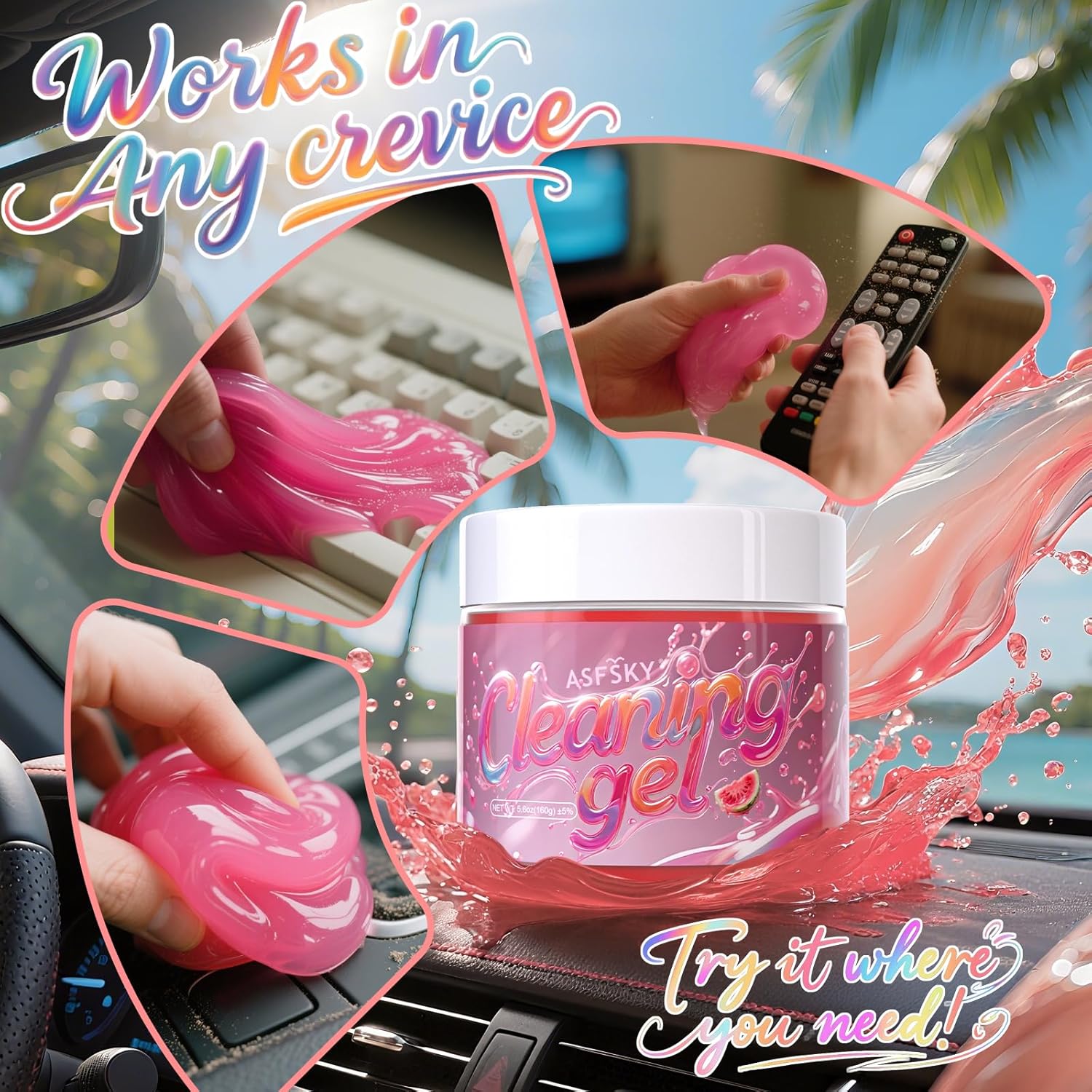 - EFFECTIVE CLEANING WITH STRONG CLEANING POWER.Tired of dust and debris lingering in those hard - to - reach corners?Our brand - new 160g Fruit - scented cleaning gel is here to save the day!This gel is soft and incredibly effective, grabs hold of dust and garbage in air vents, office keyboards, and home blinds' gaps,also for home and office use, cleaning putty for electronics, computer keyboard, laptops, cell phone, calculator, TV remote and furniture.