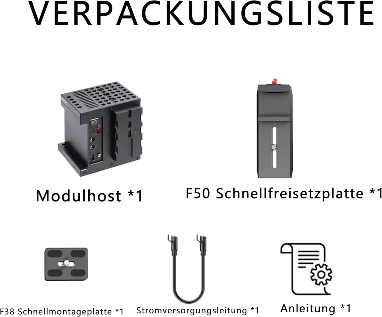 - Aluminum alloy modular, highly integrated 6-way power system + cooling system + NPF male port + NPF female port (with F970 battery) with exquisite design