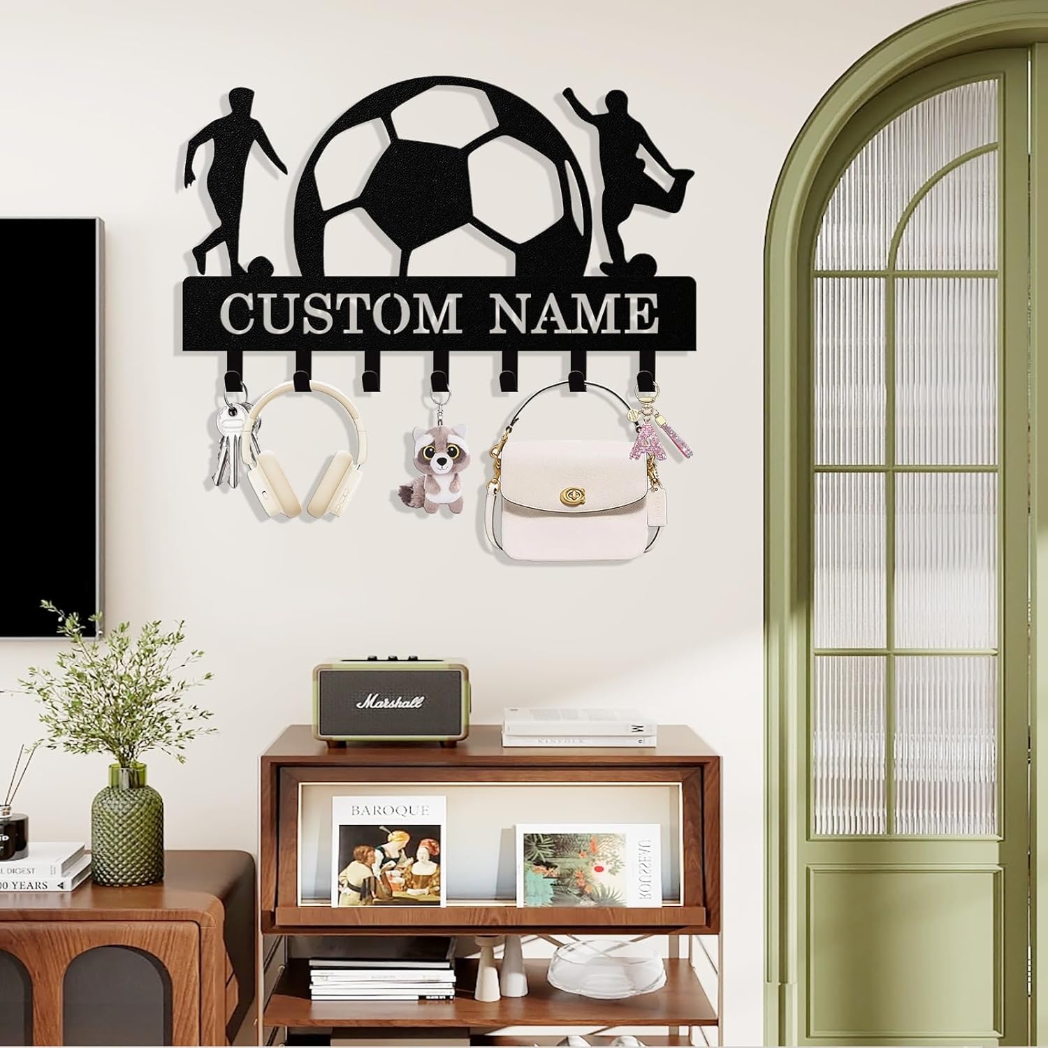 - Custom Design - Click “Customize Now” and enter the name or text you desire to create a truly one-of-a-kind personalized piece. This football key holder wall mount is not only practical but also serves as a unique home décor item, expressing your individual style