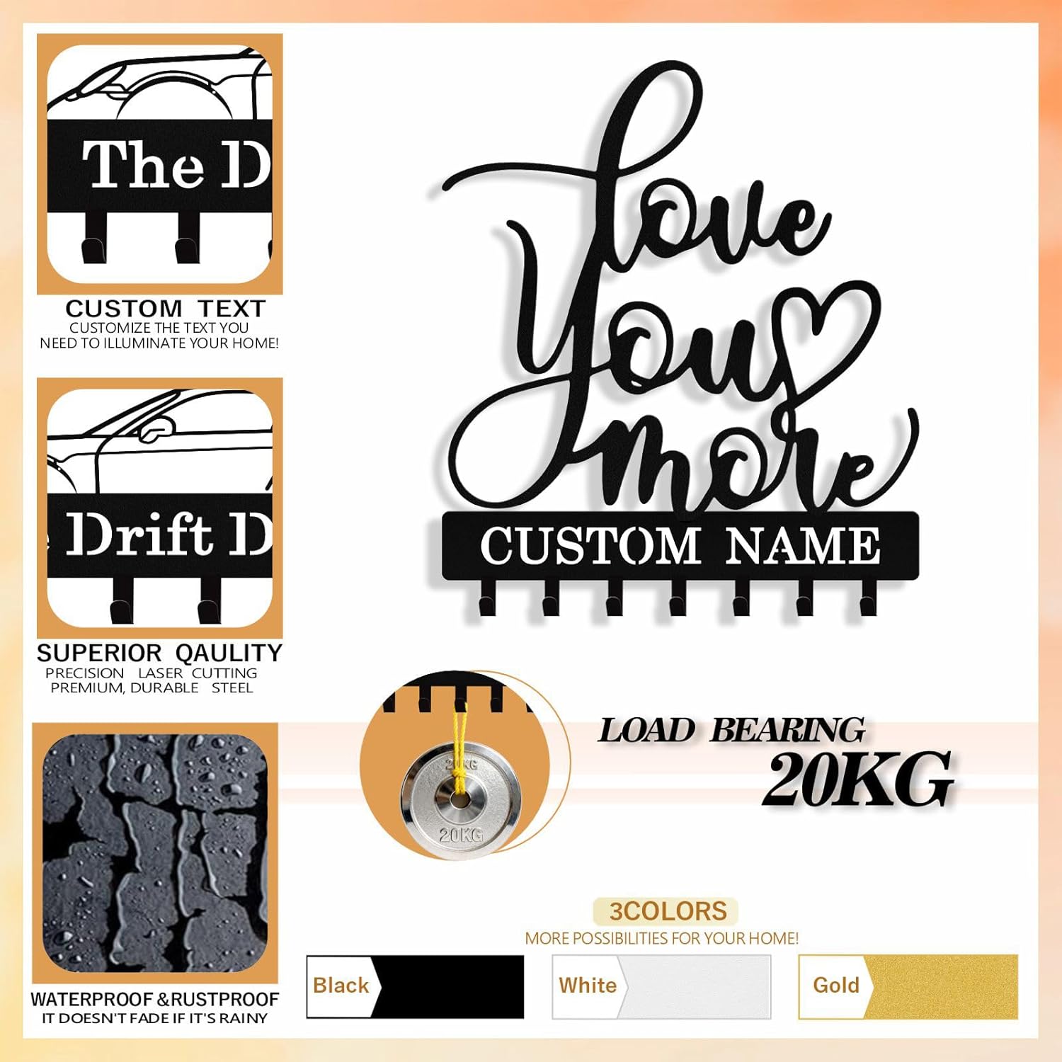 - Exquisite Craftsmanship & Quality - This custom key holder is crafted from premium metal steel, precision laser-cut for smooth, snag-free edges. Its robust construction holds multiple coats, keys, and essentials without bending, and it’s powder-coated for rust-resistance, water-resistance, and fade-resistance, ensuring it withstands daily wear and tear